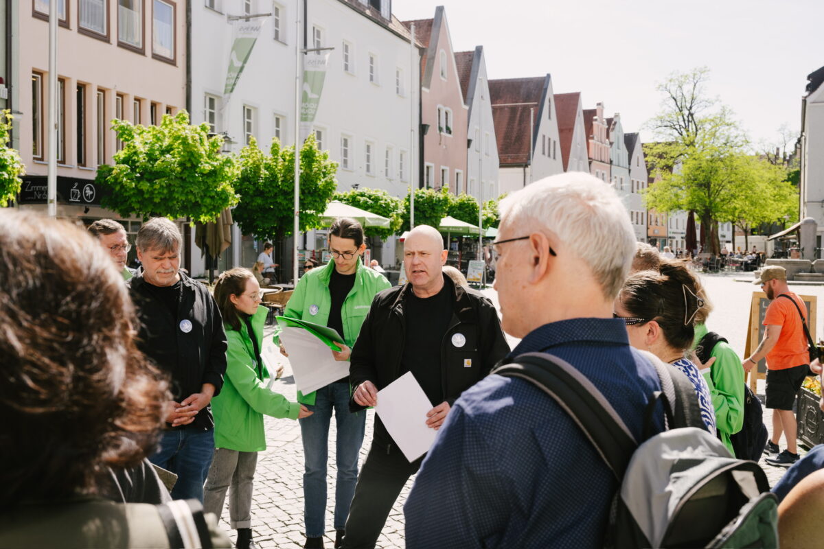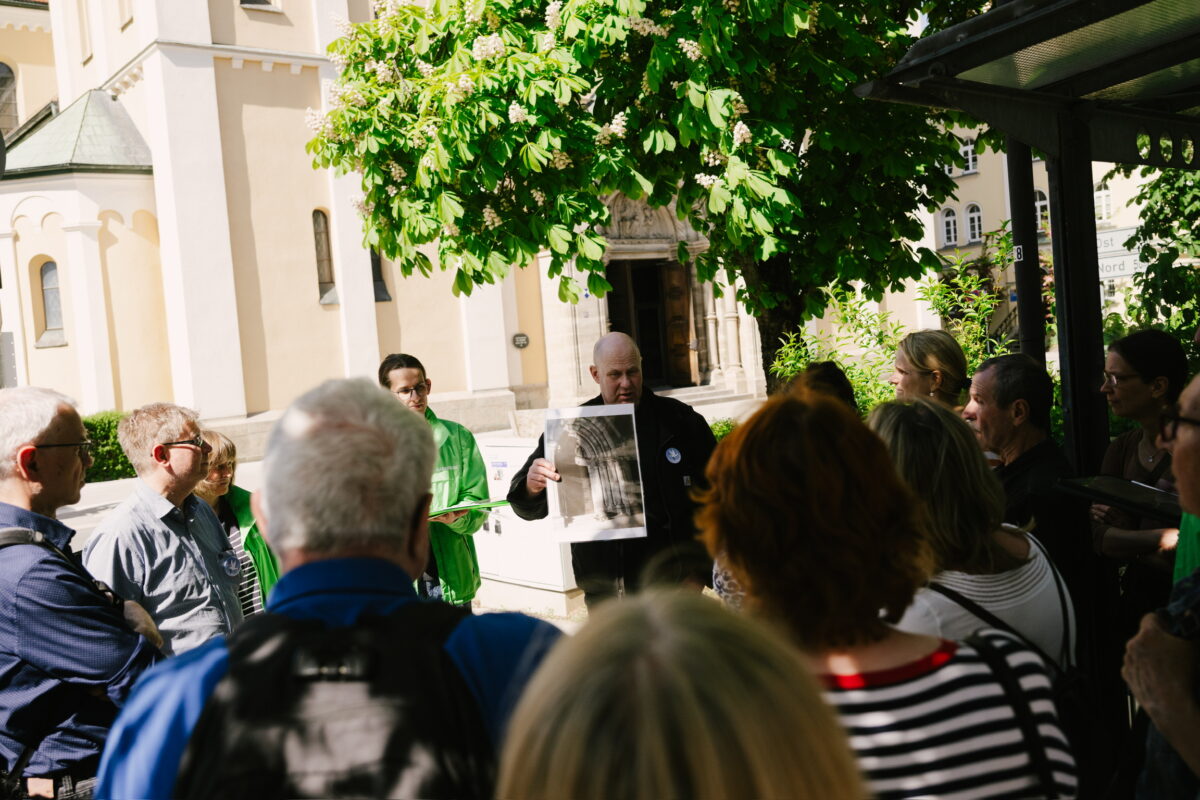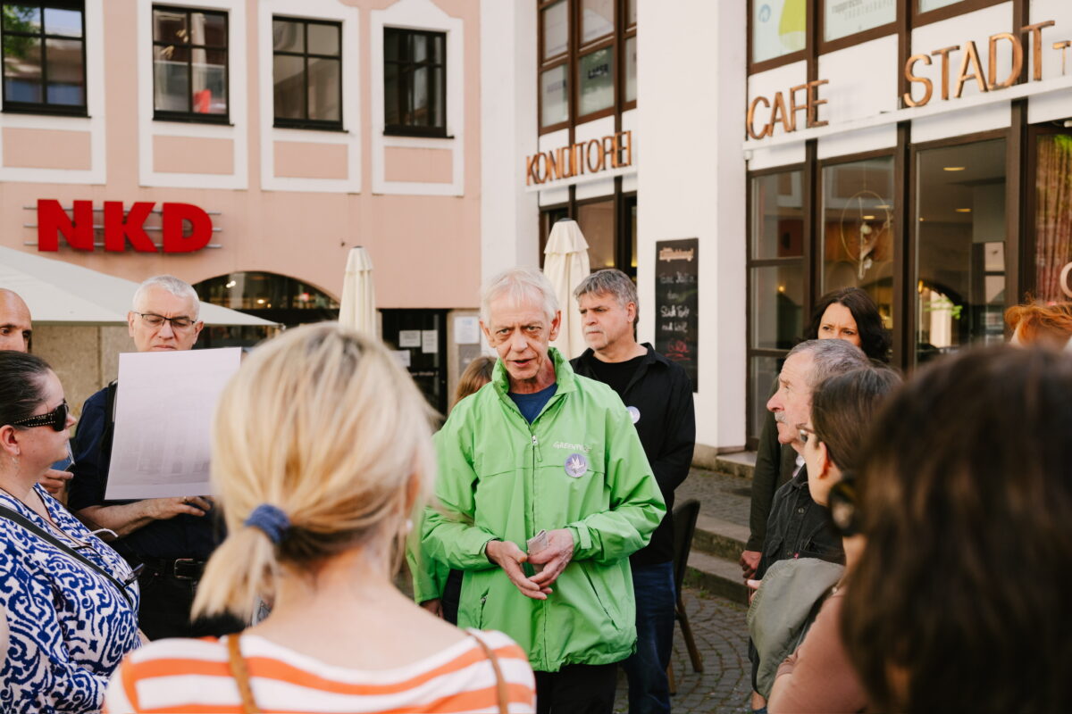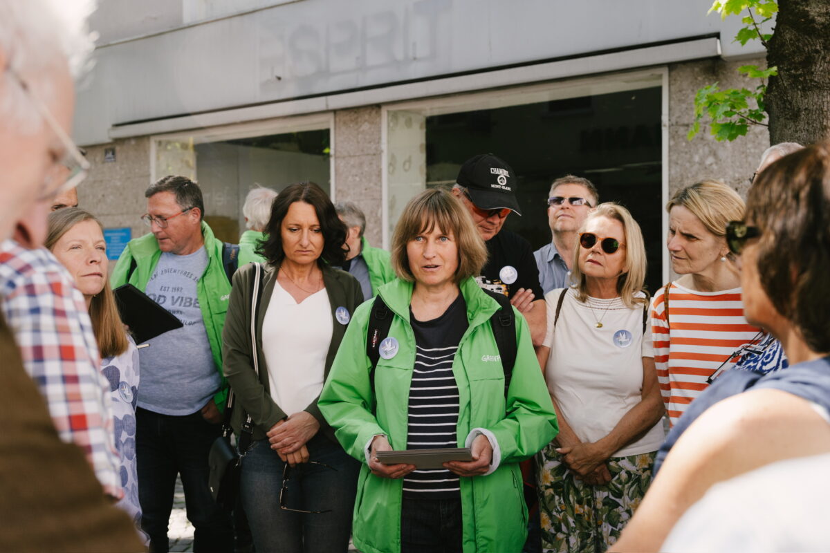 Sparrer war dankbar für “80 Jahre Frieden”, so das Motto der Stadtrundgänge. Das sei auch der Grund, warum sich Greenpeace des Themas annimmt. “Wir möchten einen Beitrag zur Erinnerungskultur leisten”, so Sparrer. Gerade in Zeiten wie diesen sei es wichtiger denn je, sich zu erinnern. Frieden sei die Grundlage für ein glückliches Leben ohne Angst, für eine freie Gesellschaft und demokratische Werte wie Umweltschutz. “There’s no green without peace, and no peace without green.”