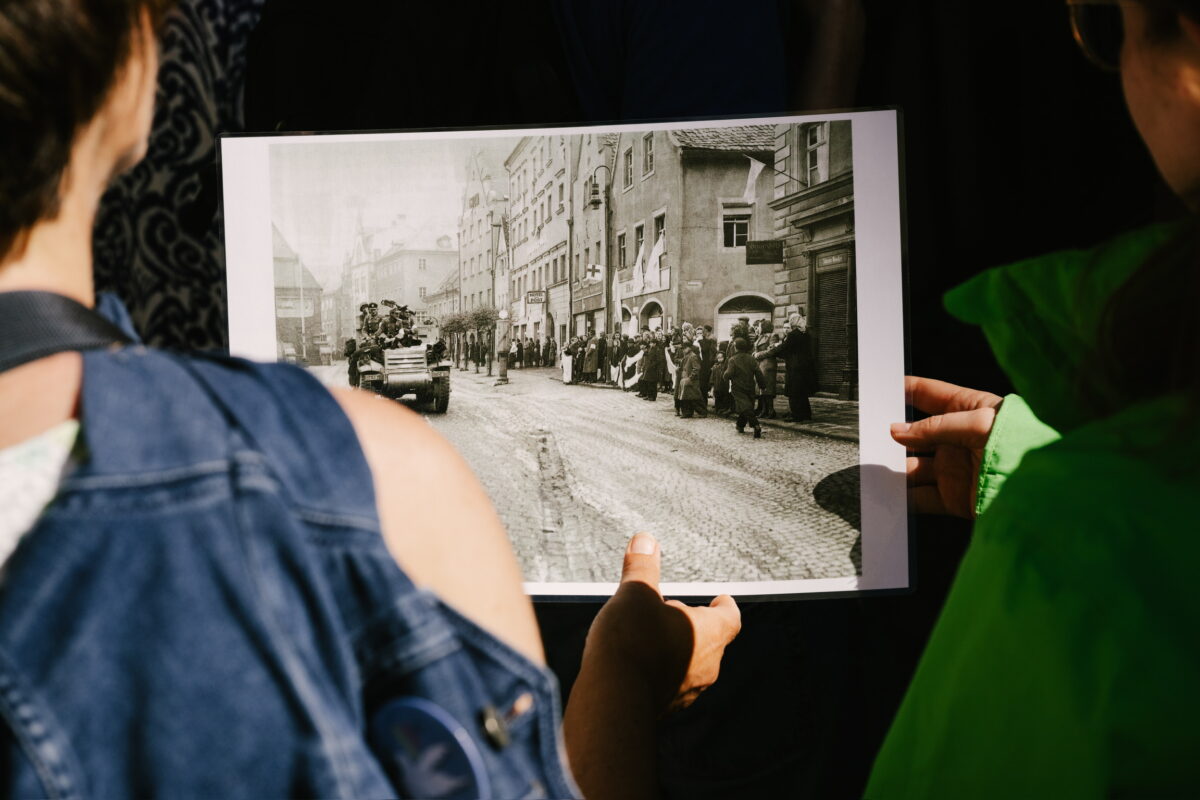 Organisatoren waren Gruppenkoordinator Günther Sparrer und Franz Zielinski. Sie wurden im Vorfeld von Dr. Sebastian Schott (Stadtarchiv Weiden) und Redakteurin Christine Ascherl (verantwortlich für die Bücher “Jüdische Familien”, “Sie kommen – die letzten Kriegstage in der Oberpfalz) mit Informationen versorgt. Darunter waren auch historische Fotos, die als großflächige Laminierung bei den Rundgängen gezeigt wurden.