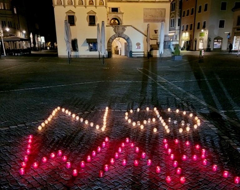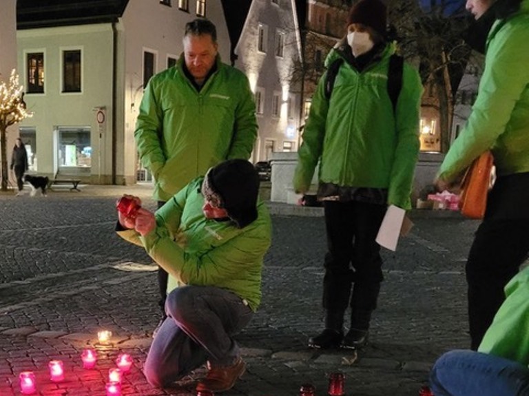 Die Aktivistinnen und Aktivisten trafen sich am Sonntag zu einer Mahnwache vor dem Alten Rathaus und formten aus Kerzen den Schriftzug “No War”. Claudia Kneidl und Angela Frank von Greenpeace Weiden betonten, dass die Solidarität mit der Ukraine in Deutschland, Europa und der Welt überwältigend sei.