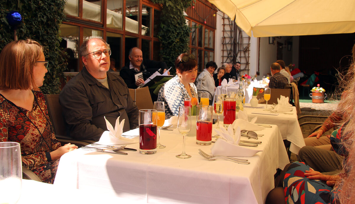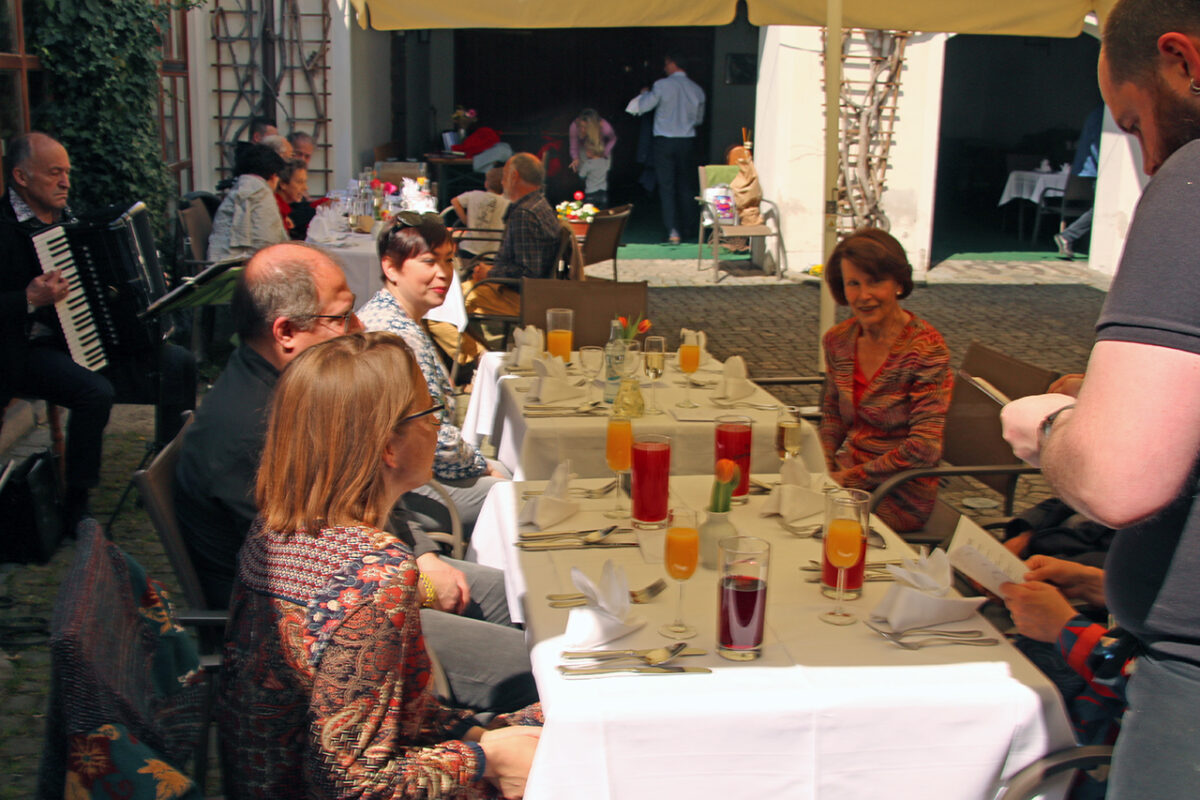 77 Jahre und einige Odysseen wie die Flucht aus der stalinistischen Tschechoslowakei der 1950er Jahre später sitzt Alexander Fried im Kreise seiner Familie im sonnendurchfluteten Innenhof des Waldsassener Gasthofs Prinzregent Luitpold. Der Jubilar blinzelt gegen die Sonne, als könne er es nicht fassen, immer noch von dieser Welt zu sein. Eine Welt, die sich weitergedreht hat, aber immer noch keine friedliche ist. Während Putin seine Kriegs-Rechtfertigung für die Moskauer Parade vorbereitet, sitzen an diesem Mai-Samstag Russen und Ukrainer friedlich zusammen.