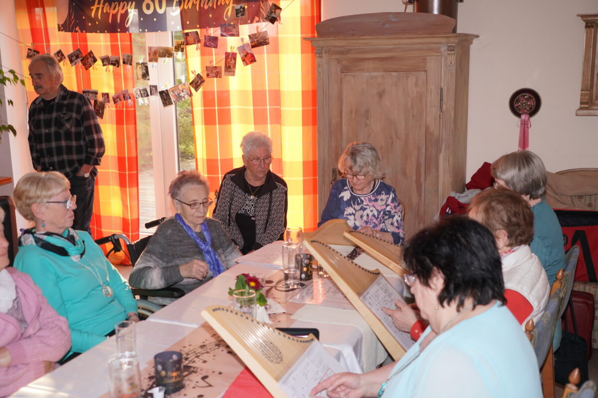 Seit rund zehn Jahren gehört Hannelore Striegl zur Veeh-Harfen-Gruppe des Musikvereins Waidhaus. Einmal wöchentlich nimmt sie an den Proben im Grenzland teil und zupft mit Leidenschaft das Saiteninstrument. Die Musikfreundinnen waren über den Fahrenberg gekommen, um der Jubilarin ein musikalisches Ständchen zu bringen. Am Abend spielte zudem die Musikkapelle Waidhaus für die Neu-Achtzigerin auf.