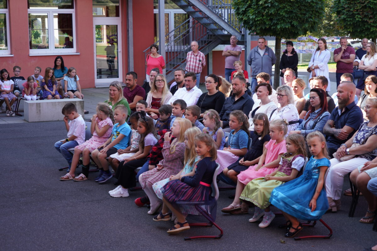 Neugierig auf die kommende Zeit waren sie alle, die zwölf Mädchen und acht Buben, die ihren ersten Schultag absolvierten. Nach dem von Pfarrer Norbert Götz zelebrierten Anfangswortgottesdienst mit Segnung fanden sich die Schulanfänger in der Aula der Wolfgang-Caspar-Printz Grundschule ein. Durch den herzlichen Empfang war es ein Start nach Maß in einen neuen Lebensabschnitt.
