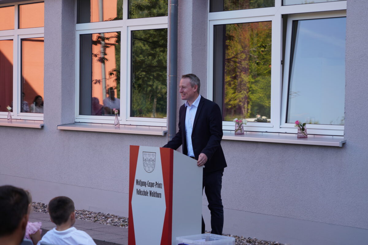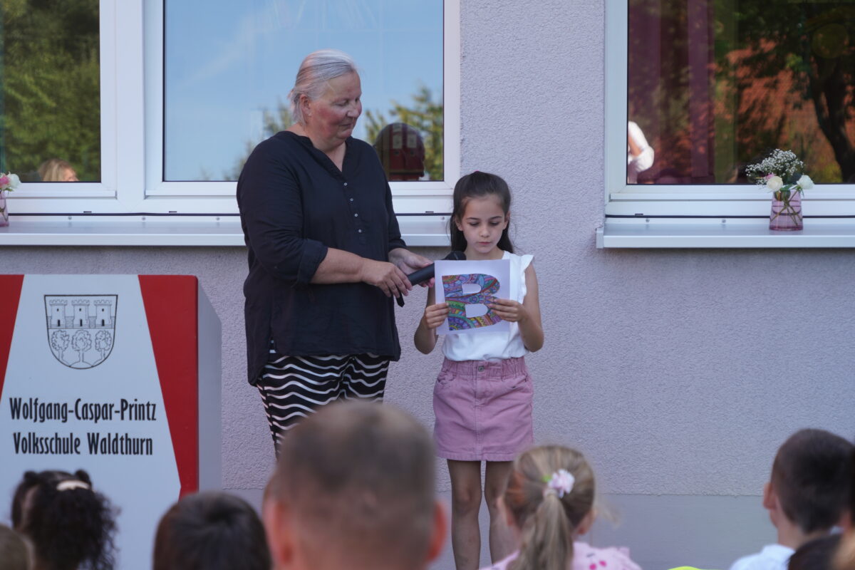 Zusammen mit Eltern und Großeltern lauschten die neuen Erstklässler den Worten der Schulleiterin Carina Hartwig. Sie wünschte den Kindern einen erfolgreichen Start und viel Spaß und Freude am Lernen in der Waldthurner Schule. Der Theisseiler Bürgermeister Johannes Kett wünschte als Vertreter des Schulverbandes eine schöne Schulzeit und spendierte den Kindern zusammen mit der Rektorin ein leckeres Eis.