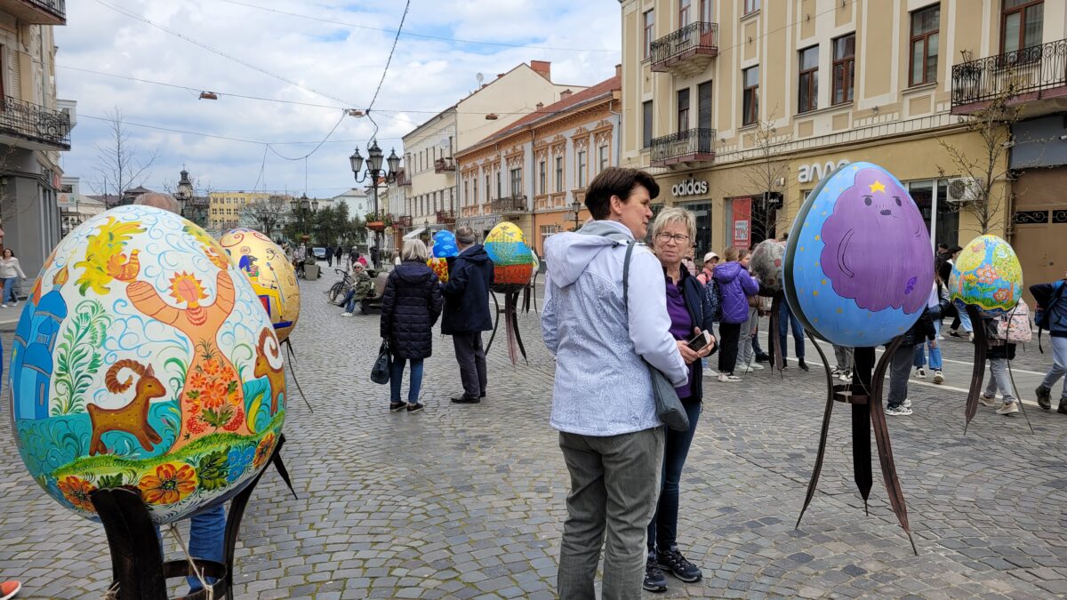 Tags darauf wurde die Reisegruppe von der bitteren Realität eingeholt: Während der Probe gab es Luftalarm. Glücklicherweise sei bald darauf Entwarnung gegeben worden. Anschließend hatte man ein wenig Zeit, das österlich geschmückte Uschgorod anzuschauen. In der Stadt sei alles seltsam „normal“ gewesen. „Kein Anzeichen, dass wir uns in einem