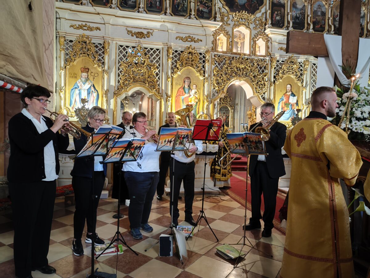 Noch lange habe man bei der Adventistengemeinde zusammengesessen, um all die sehr emotionalen Eindrücke zu verarbeiten und zu erkennen, was dort vor Ort ehrenamtlich geleistet wird. Am Karfreitag hat die Reisegruppe die nahegelegene Stadt Mukatschewo besucht. Am Abend hatte man einen ganz besonderen Auftritt bei der Karfreitagsfeier in der Kreuzerhöhungskathedrale Uschgorod. Der evangelische Posaunenchor spielte bei einer katholischen Feier in der überfüllten Kirche zur Anbetung vom Grab Christi. „Bei uns undenkbar, dass ein evangelischer Pfarrer in Anwesenheit vom Bischof Nil Jurij Luschtscha eine Andacht hält.“