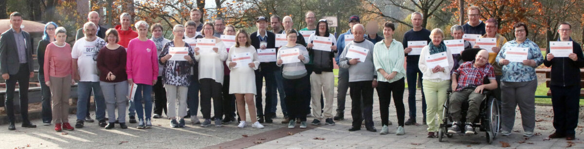 Während der Zeremonie, die von Freudentränen und herzlichem Applaus begleitet wurde, überreichten Christian Stadler, Werkstatt-Gesamtleiter Josef Albang, BBB- und Sozialdienst-Leiterin Anna Dettelbacher, Frauenbeauftragte Sabine Schatz sowie die Vertreter des Werkstattrates, Stefan Beutl und Peter Weig, die Jubilars-Urkunden und Geschenkkörbe. „Ihr seid fleißig und wichtig für unser Unternehmen“, lobte Stadler die Geehrten für ihren Einsatz. Auch Josef Albang und Sabine Schatz betonten in ihren Ansprachen die herausragende Mitarbeit und den Spaß an der Arbeit, mit dem Wunsch auf viele weitere gemeinsame Jahre.