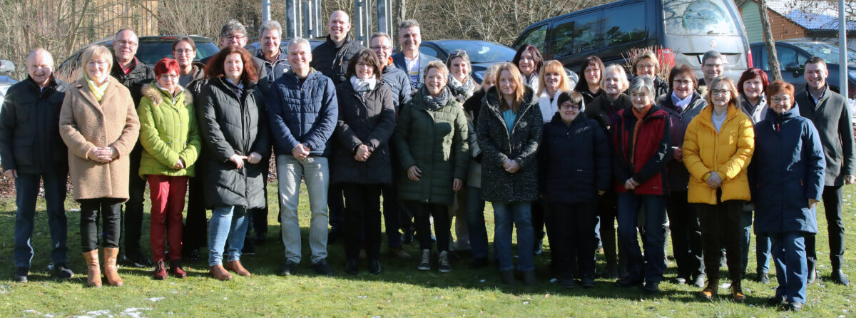 Susanne Janker und Natalie Pries aus der Förderstätte; Christa Ring, Sandra Kominowski, Ramona Götz, Jennifer Beer, Bettina Leipold und Lara Pöhnl aus dem Wohnheim; Julian Bertelshofer aus dem Pflegeheim; Michaela Vitzthum und Jasmin Gerster aus der Tagesstätte; Andrea Tröger von der Frühförderung; Hans Breiter und Kerstin Fütterer von den Offenen Hilfen; Ursula Lukas vom Hausdienst und Josef Winter, Ingrid Frank-Riedl, Franz Haid sowie Alexander Widiker vom Fahrdienst.