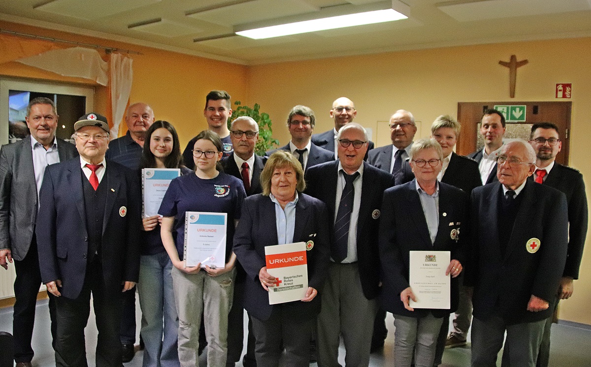 Bei den anschließenden Neuwahlen wurden Daniel Sertl als Bereitschaftsleiter und Astrid Kraus als Stellvertreterin einstimmig in ihren Ämtern bestätigt. Dazu gab es noch viele Ehrungen für verdiente Mitglieder des BRK Auerbach.