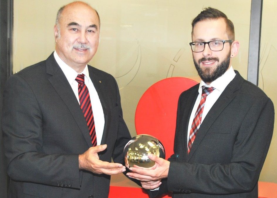 Damit verbunden überreichte er dem frischgebackenen Bayerischen Meister eine silberfarbene Kugel. Die Kugel soll zum einen den Kegelsport und zum anderen die Wertschätzung der Leistung symbolisieren.