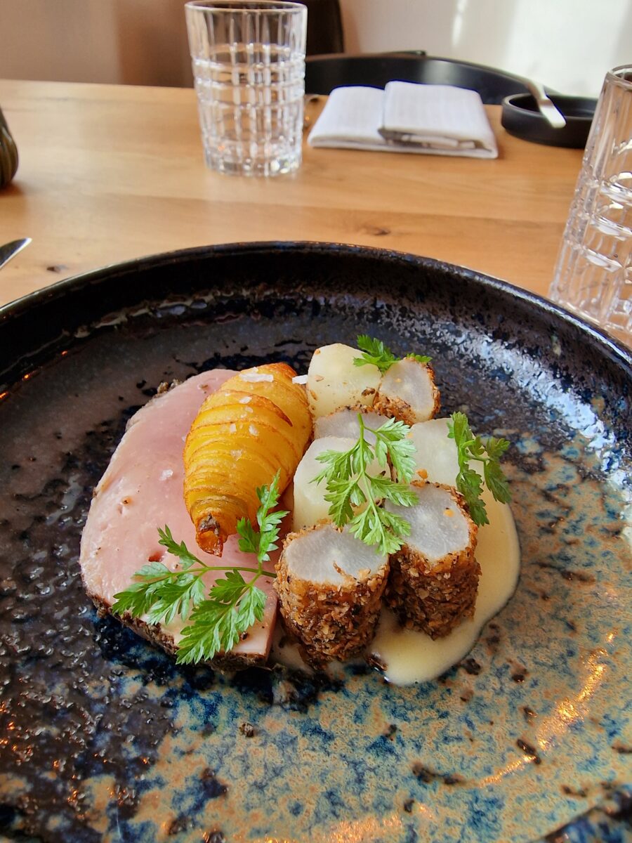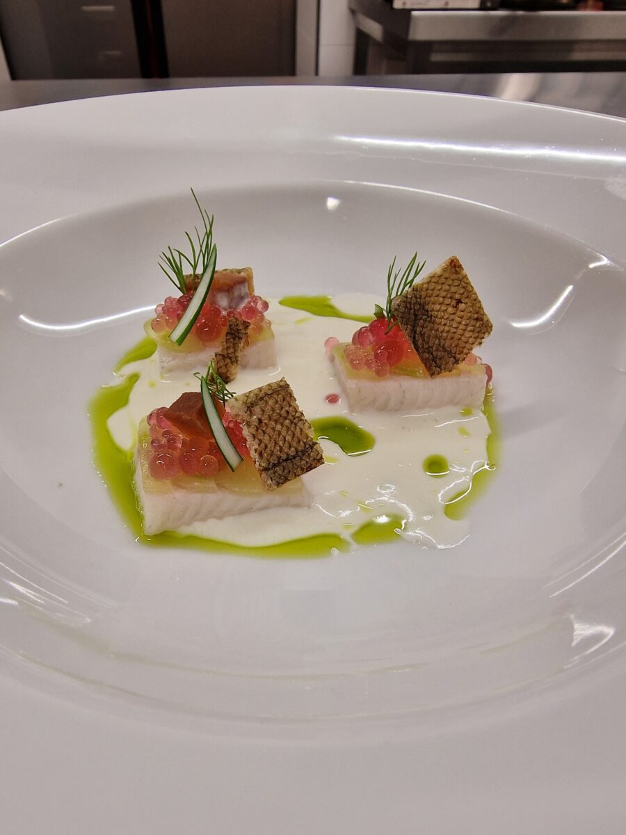 Bei aller Kreativität des Chefkochs, das Hauptaugenmerk des gebürtigen Waldsasseners und jetzt “der Liebe wegen” in Reuth bei Erbendorf lebenden 31-Jährigen liegt auf der Regionalität. “Mit Ausnahme ganz weniger Zutaten oder Salate, die es bei uns zu bestimmten Jahreszeiten einfach nicht gibt, kommen nur Produkte aus der Region auf den Teller.” Sein Fleisch bezieht er von einem Metzger aus Floss, die Garnelen aus Bärnau und Fisch natürlich überwiegend aus den Teichen zwischen Kornthan und Tirschenreuth. “Die Oberpfalz kann mehr als Karpfen und Zoigl”, sagt Mark. Was er nicht bekommt in der näheren Umgebung, macht er zum Teil selbst: Joghurt oder Linsenaufstrich unter anderem oder demnächst Plätzchen und Glühwein.