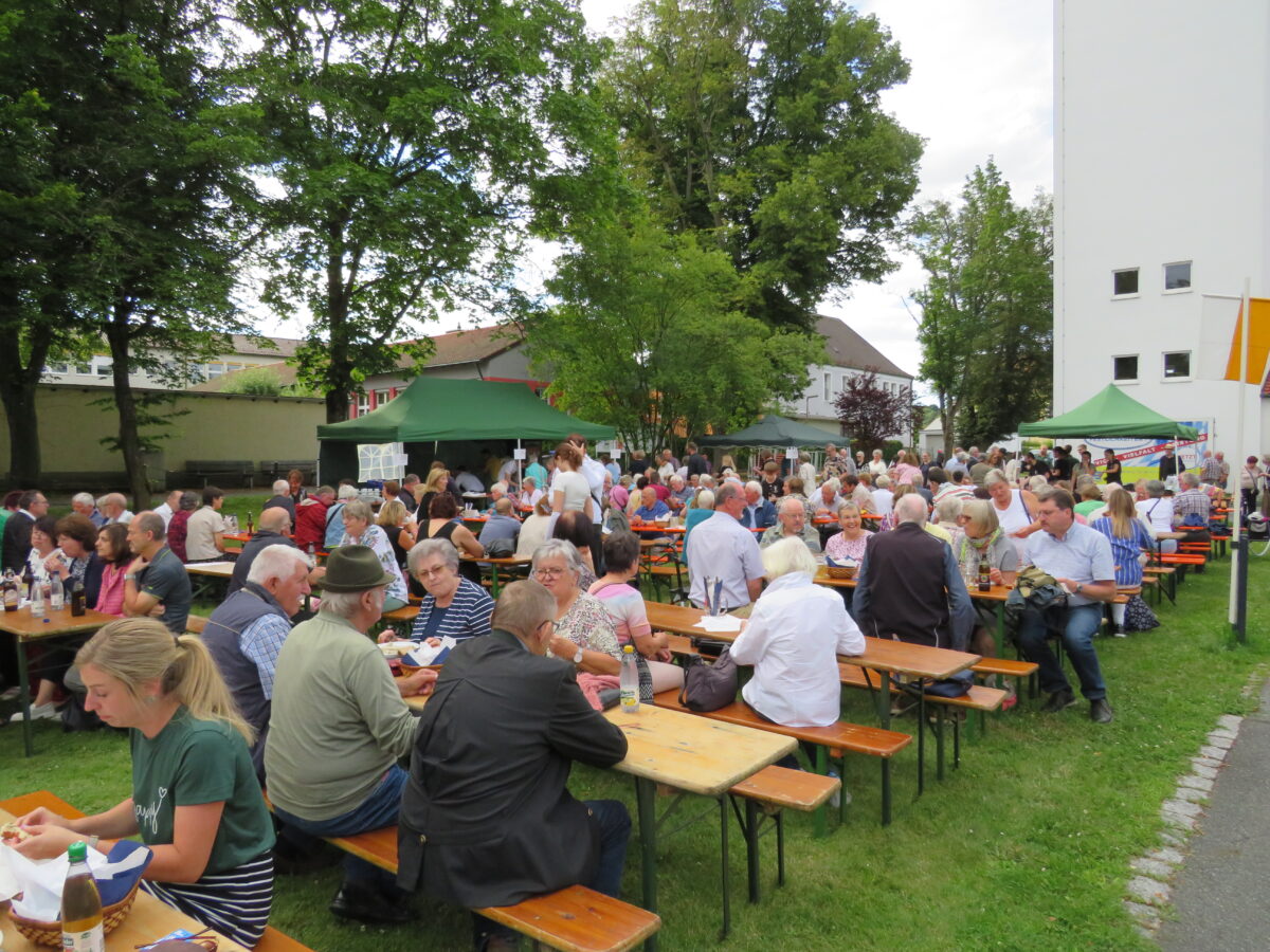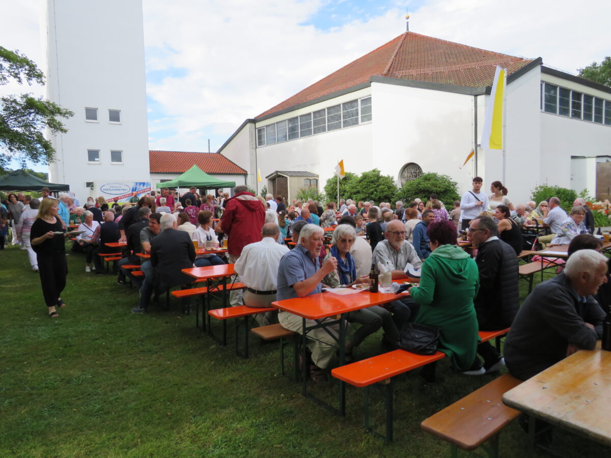 Im Anschluss lud der Pfarrgemeinderat, die Ministranten und die Pfarrei zum weltlichen Fest auf die Wiese vor der neuen Kirche ein. Viele der Kirchenbesucher nutzten dabei die Gelegenheit zum Gespräch mit dem Jubilar und sprachen ihre Glückwünsche aus.