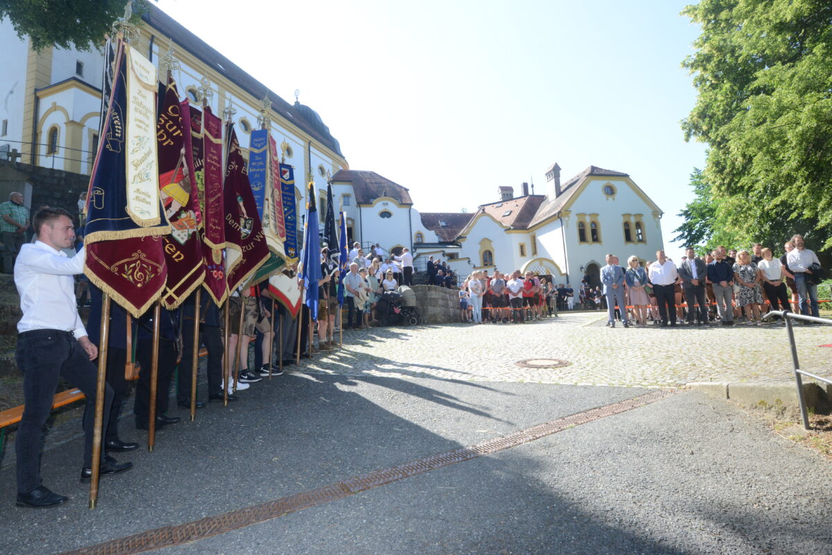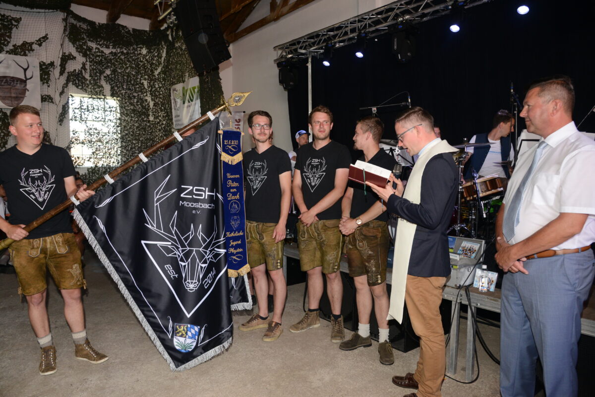 Der Frühschoppen bot dann auch für die Katholische Jugend die Gelegenheit sich beim Patenverein ZsH Moosbach mit einem Erinnerungsband für die Vereinsfahne zu bedanken, das Stadtpfarrer Adam Karolczak weihte. Am Nachmittag lösten die „Hulzstoussboum“ die Kapelle des Vormittags ab und spielten bis zum Festende. Mit einem Feuerwerk endete das Jubiläumsfest.