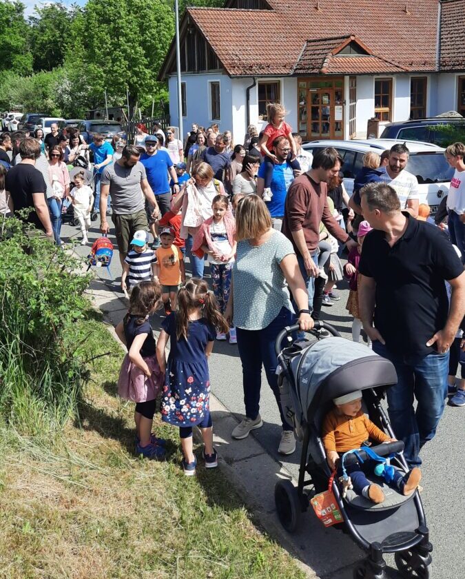 So waren am Freitagnachmittag die Eltern der 45 Kinder, im Alter von ein bis sechs Jahren, gekommen, um sich von ihrem Nachwuchs verwöhnen zu lassen. Die Eltern waren überrascht von den Backkünsten ihrer Kinder. Gemeinsam unternahmen sie zuerst eine kleine Wanderung, bevor sich alle im Kindergarten zum Feiern versammelten.