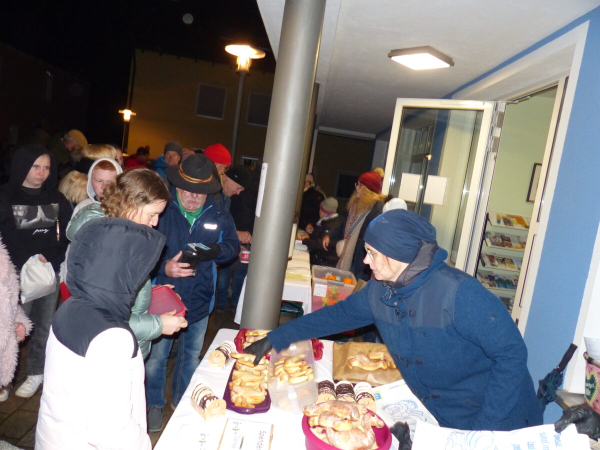Nach der Feier im Gotteshaus zogen die Kinder mit ihrer Laterne durch die Flur in Richtung Rathaus. Dort hatten fleißige Helfer schon einiges aufgebaut. Den heiligen Martin gab es als Gebäck, dazu warme Getränke und Bratwürste und Grillfleisch vom Grill. Der Dank galt den vielen Helferinnen und Helfern – ein tolles Gemeinschaftswerkwerk.