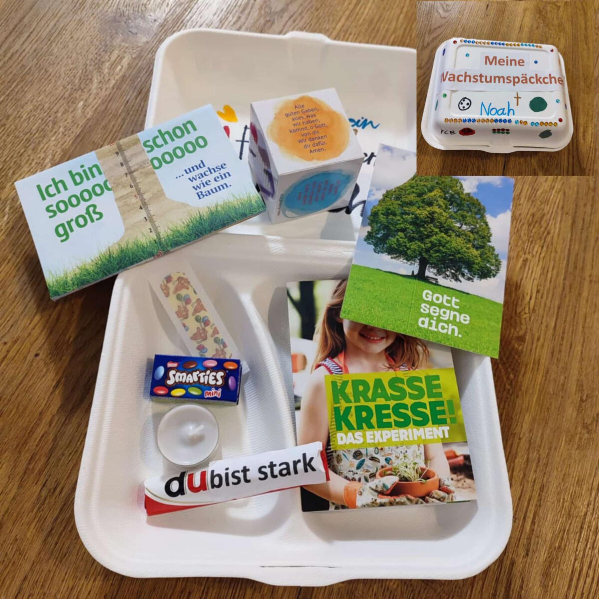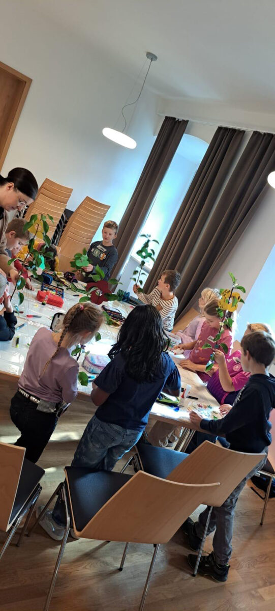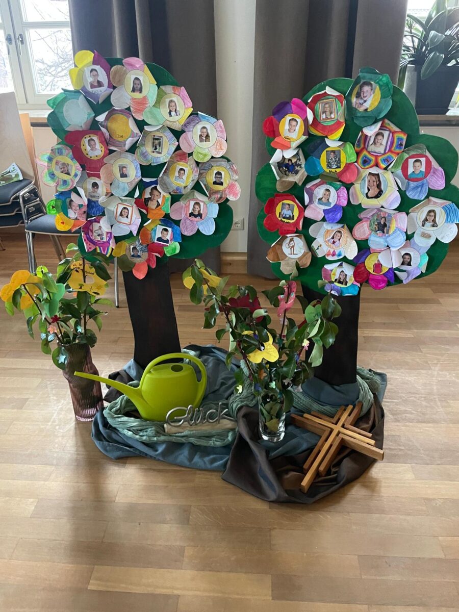 So haben die Klassen beispielsweise ein Wachstumspäckchen zusammengestellt, Kresse angesät, Früchte und Bäume dargestellt und somit persönliche Stärken herausgestellt. Kathrin Arnold und Angela Wittmann kümmerten sich um das leckere Mittagessen Spaghetti Bolognese und am Abend reichten sie Wienersemmeln. Pfarrer Norbert Götz lobte den fröhlichen und intensiven Gesang der Mädchen und Buben beim Gottesdienst.