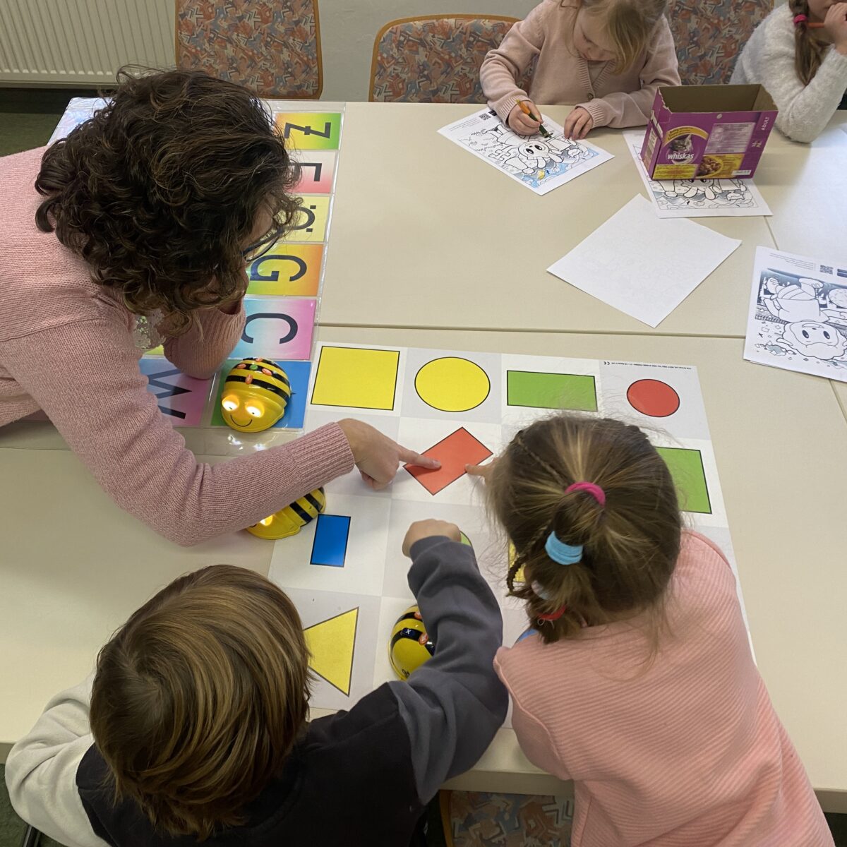 Nachdem alle Fragen beantwortet waren, beschäftigten sich die Kinder im Schulungsraum mit allen vorhandenen Medien für den Bereich Kindergarten und Vorschule. Es wurden Bienen programmiert, Puzzles zusammengesetzt und per App zum Leben erweckt, mit EDURINO wurde Deutsch und Mathe „gelernt“, mit Matatalab Winter- und Weihnachtslieder programmiert sowie „Links“ und „Rechts“ geübt.
