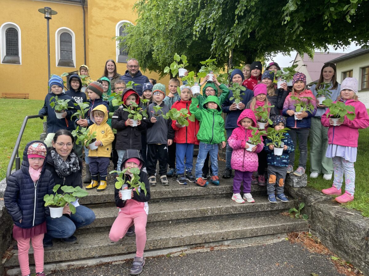Unter der Leitung der Jugendbeauftragten Elisabeth Träger-Greß und Magdalena Mensch haben die Kinder die Möglichkeit, über den Sommer hinweg ihre grünen Daumen zu beweisen, die Pflanzen zu pflegen und eigene Kürbisse heranzuziehen. Insgesamt beteiligen sich 52 Buben und Mädchen an der Aktion.