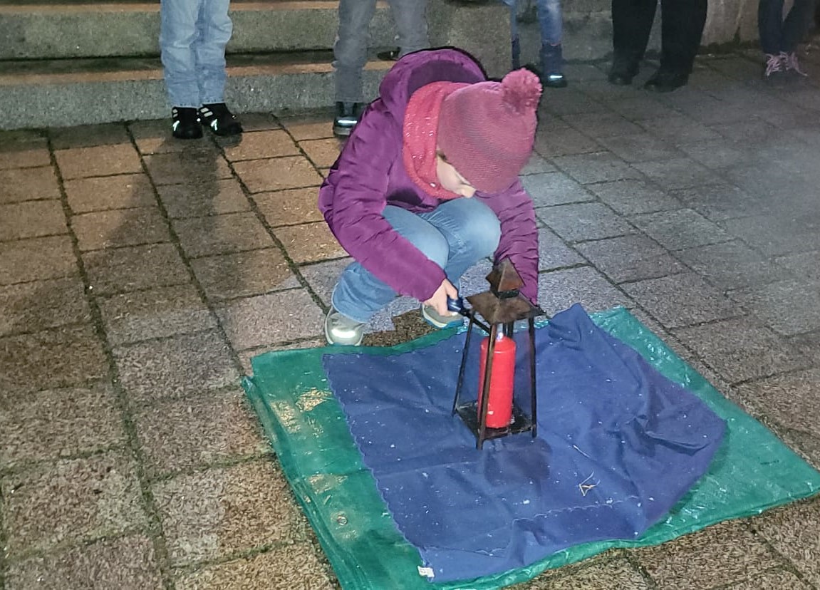 In Flossenbürg haben die Kommunionkinder zusammen mit ihrer Religionslehrerin Kerstin Wallmeyer das Adventsfenster zu einem Schauplatz der Reflexion über Licht und Dunkelheit gemacht. In der Geschichte, die die Kinder lasen und spielten, steht ein König vor der Entscheidung, welcher seiner zwei Söhne sein Nachfolger werden soll. Die Aufgabe für die Söhne: die Schlosshalle bis zum Abend so zu füllen, dass sie der Menschheit dient. Während der eine Sohn die Halle mit Stroh füllt, wählt der andere einen subtileren, aber kraftvollen Ansatz, indem er eine einzelne Kerze entzündet, deren Licht sich in alle Ecken ausbreitet und so die Halle erfüllt. Dieses Bild, eine Halle voller Licht, geschaffen durch eine einzige Kerze, verdeutlicht die Botschaft des Advents und der Geschichte: Es braucht oft nicht viel, um Hoffnung und Licht zu verbreiten.