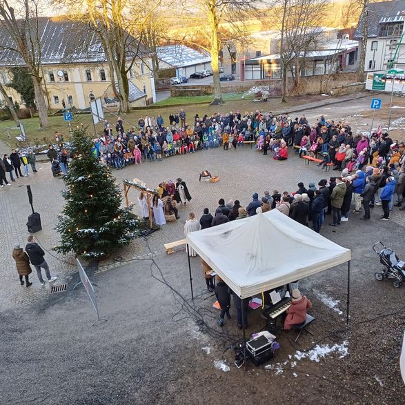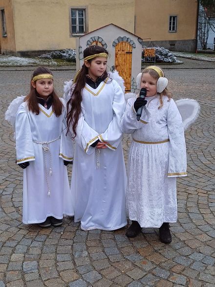 Die Krippenfeier wurde von der Gemeindeassistentin Elena Harwardt gestaltet und vom katholischen Kinderchor unter der Leitung von Magdalena Süß umrahmt. Mit den beiden Aufführungen und der Krippenfeier war der Zauber der Weihnacht in diesem Jahr Vohenstrauß spätestens am Heiligabend mit Händen greifbar und wurde in die Häuser der ehemaligen Kreisstadt gebracht.