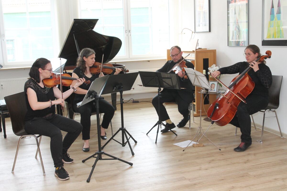 Perfekt zur Vernissage passt auch die Musik. Viel Beifall gibt es neben Joachim Scheibl am Flügel für das Streicher-Quartett mit Lisa Gammer, Lucia Haider, Iris Wunderlich und Josef Miethaner. Die Sopranistin Manuela Falk und Joachim Scheibl, begleitet von Susanne Schieder am Flügel, setzen mit dem Trinklied aus der Oper „La traviata“ von Guiseppe Verdi den Schlusspunkt. Das heißt: Es gibt etwas zu trinken und Häppchen für den kleinen Appetit.