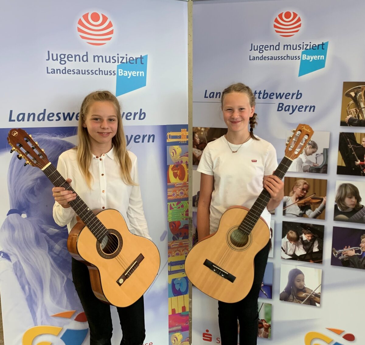 Beim sogenannten „kleinen“ Landeswettbewerb, der dieses Jahr in Ingolstadt stattfand, nahmen die beiden jungen Damen in der Altersgruppe II zusammen mit weiteren vierzehn jungen Musikerinnen und Musikern aus ganz Bayern in der Gruppe der Zupfinstrumente/Gitarrenduo teil.