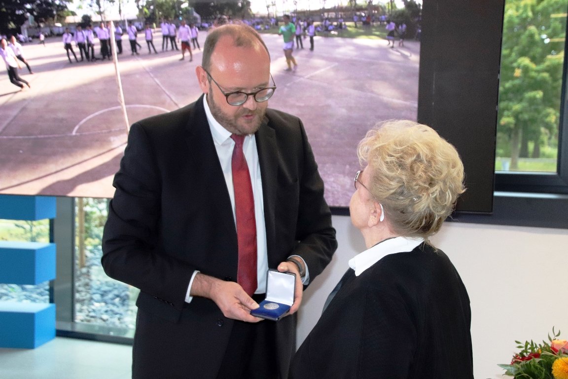 Gerlinde Engel, eine der Gründerinnen der Stiftung “Engel für Kinder” wurde von Landrat Andreas Meier im Future Lab in Weiherhammer mit der Landkreismedaille geehrt. Mit der Auszeichnung würdigt der Landkreis das soziale Engagement der heute 83-Jährigen. Gemeinsam mit ihrer Schwester Inge hatte sie 2003 die Stiftung ins Leben gerufen. Sie hatte sich besonders um Schulkinder im bitterarmen Laos gekümmert.