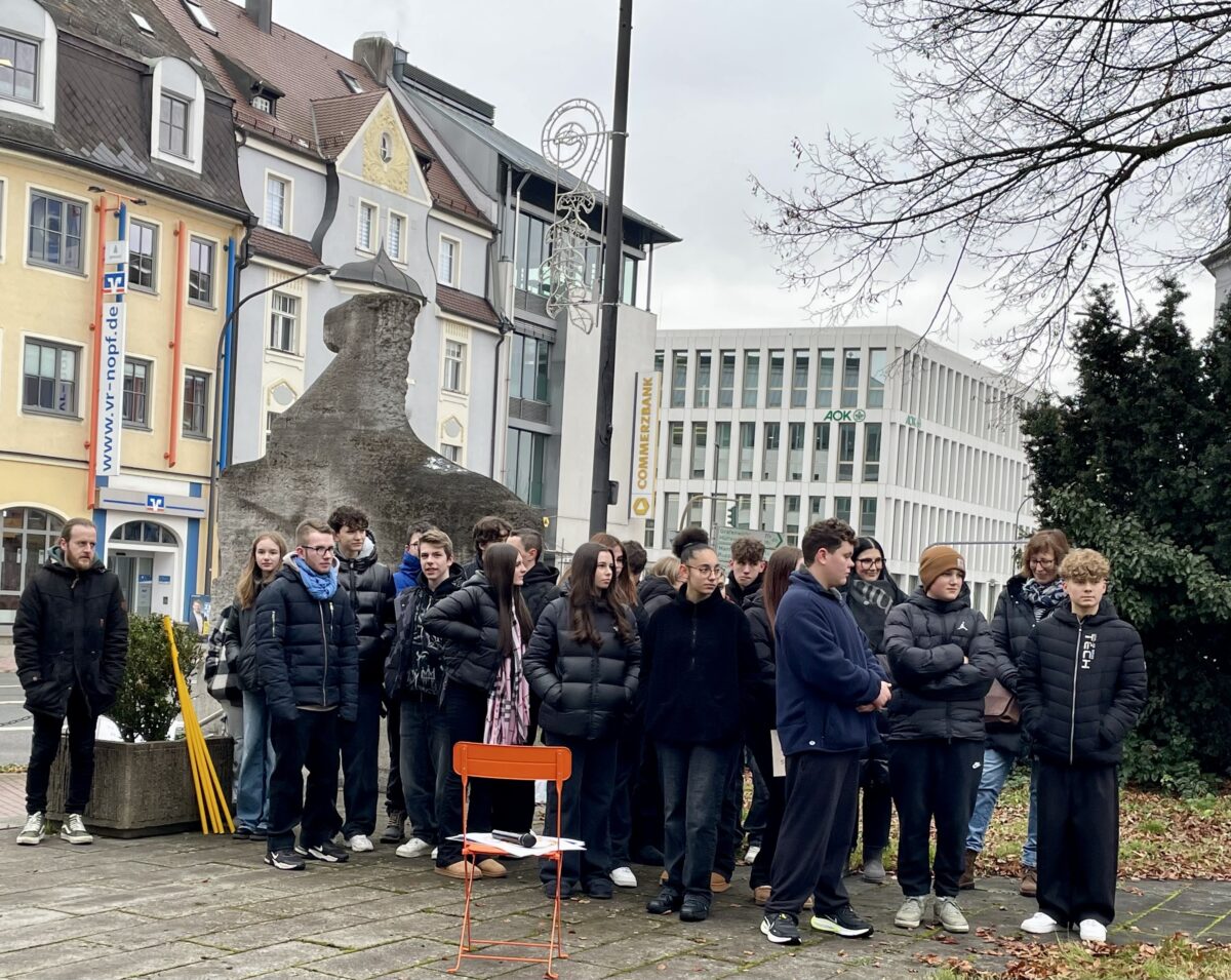 Die Schüler hatten sich mit ihren Lehrern Ursula Soderer, Christina Hein und Sabine Lettl mit dem Schicksal von Klara Thomé befasst. Die jüdische Bankiersgattin war unter dem zunehmenden Druck der Nationalsozialisten von ihrem katholischen Ehemann im Stich gelassen worden. Sie wurde im Oktober 1944 in einem der letzten Deportationszüge nach Auschwitz gebracht und starb in den Gaskammern Birkenaus.