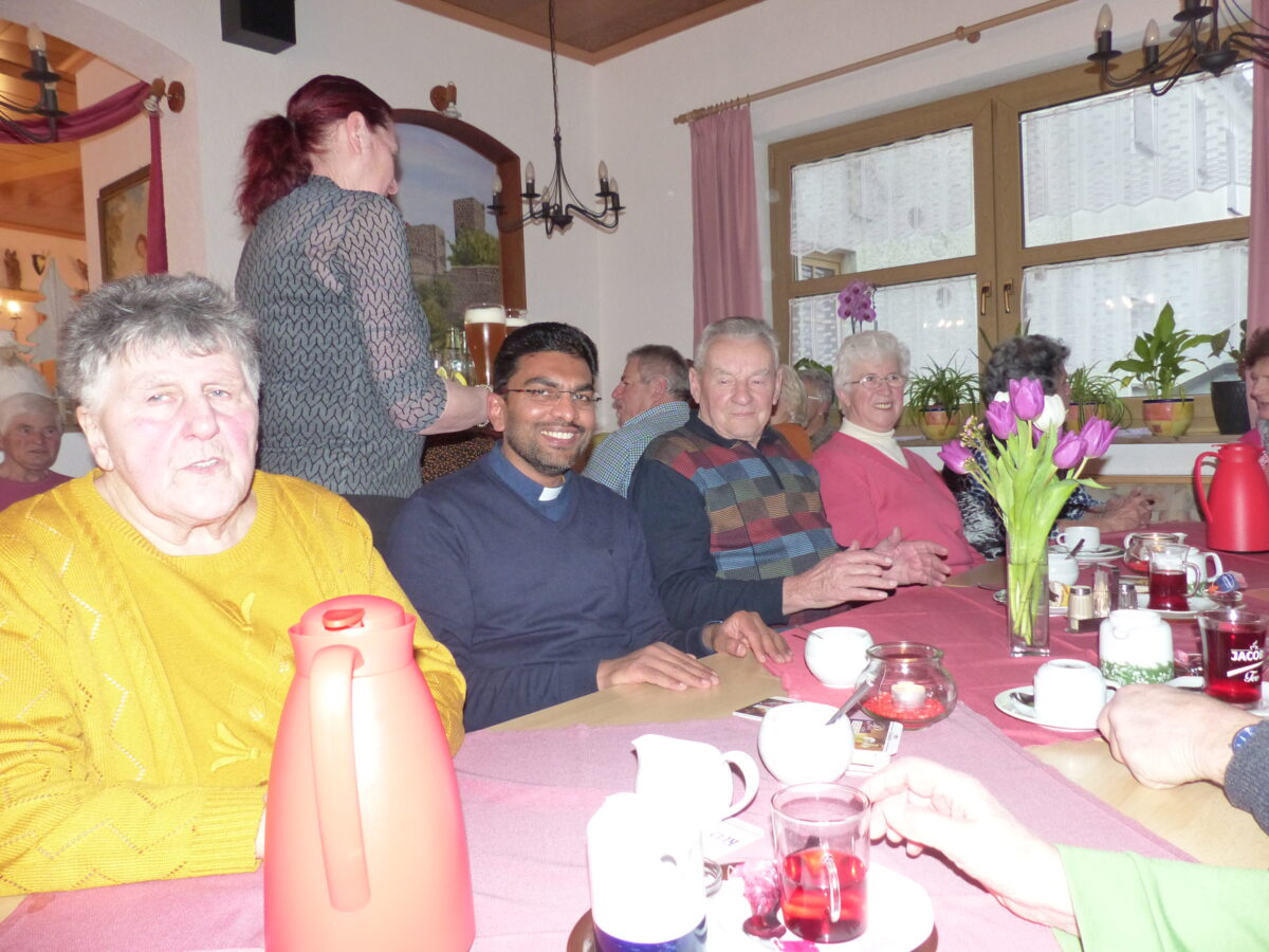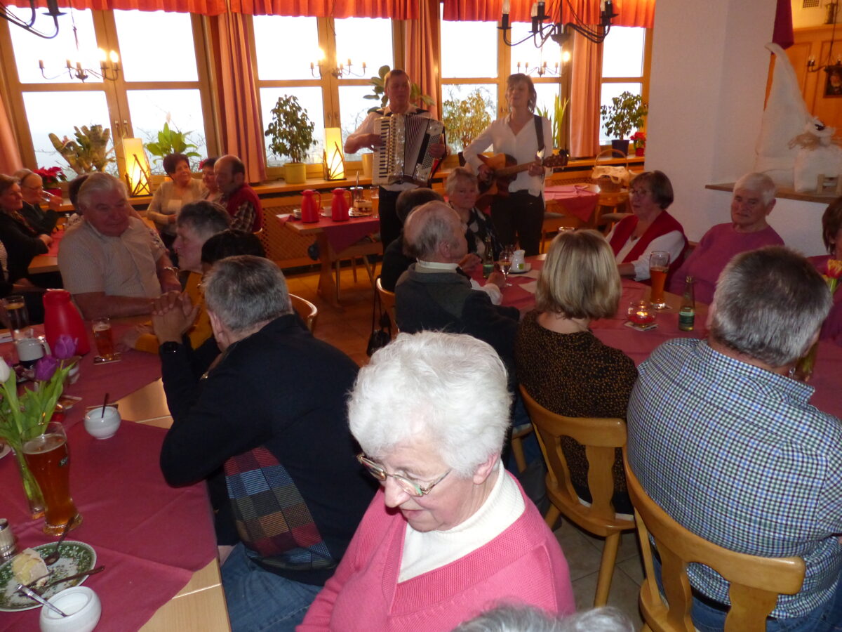 Bei Kaffee, Kuchen, verschiedenen Getränken und Brotzeit gab es viel zu erzählen. Auch Pfarrer Josef, der zur Zeit Pfarrer Adam Nieciecki für zwei Wochen vertritt, war unter den Besuchern. Zur musikalischen Aufheiterung, Mitsingen und Schunkeln sorgte das Duo Baier, Vater Josef und Tochter Katrin aus Wittschau.