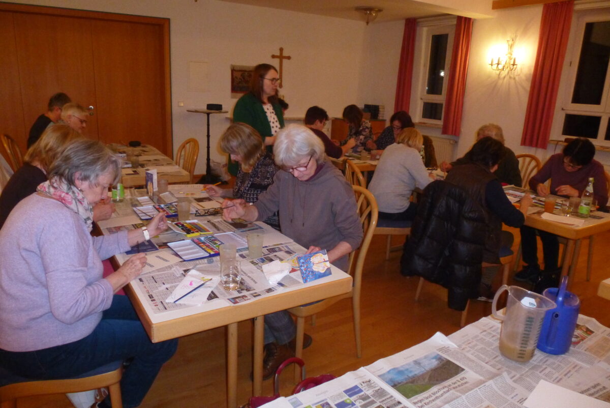 Die Teilnehmerinnen setzten diese Impulse kreativ mit Aquarellfarben um. Die entstandenen Kunstwerke, die Bilder von Händen zeigten, die sich Gott entgegenstrecken und von Glauben, Hoffnung sowie Liebe erfüllt sind, durften die Frauen mit nach Hause nehmen.