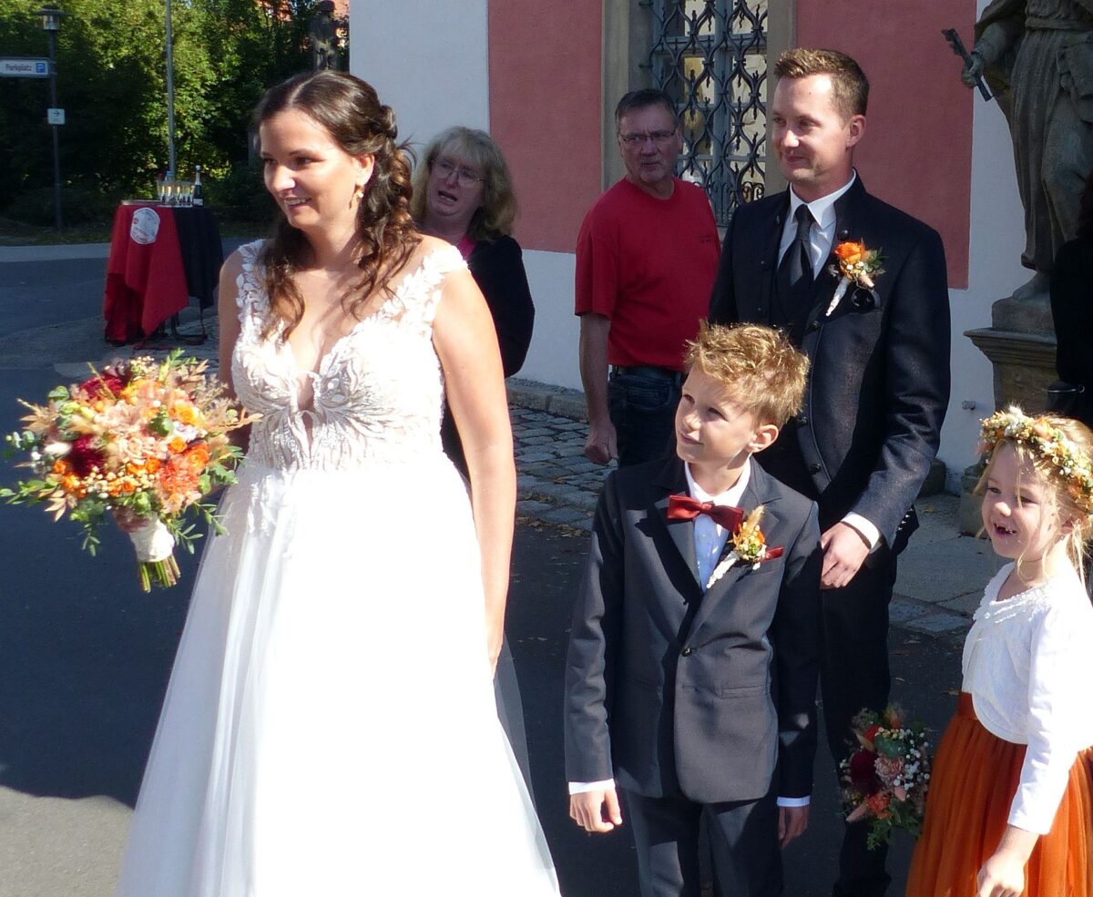 In Schlammersdorf feierten Lisa und Andreas Fürst in der malerischen Kulisse der barocken Klosterkirche Speinshart ihre kirchliche Hochzeit. Vor zwei Wochen hatten die beiden im Bürgerhaus Schlammersdorf bei Bürgermeister Johannes Schmid bereits standesamtlich geheiratet. Die nun folgende kirchliche Zeremonie wurde von Familie, Freunden und Bekannten begleitet und von Pater Andreas Kugler feierlich gestaltet. Der Tag war nicht nur durch das Kaiserwetter etwas ganz Besonderes, sondern auch durch die festliche musikalische Begleitung von Organist Matthias Stiegler und der Solosängerin Anna Schön aus Weiden.