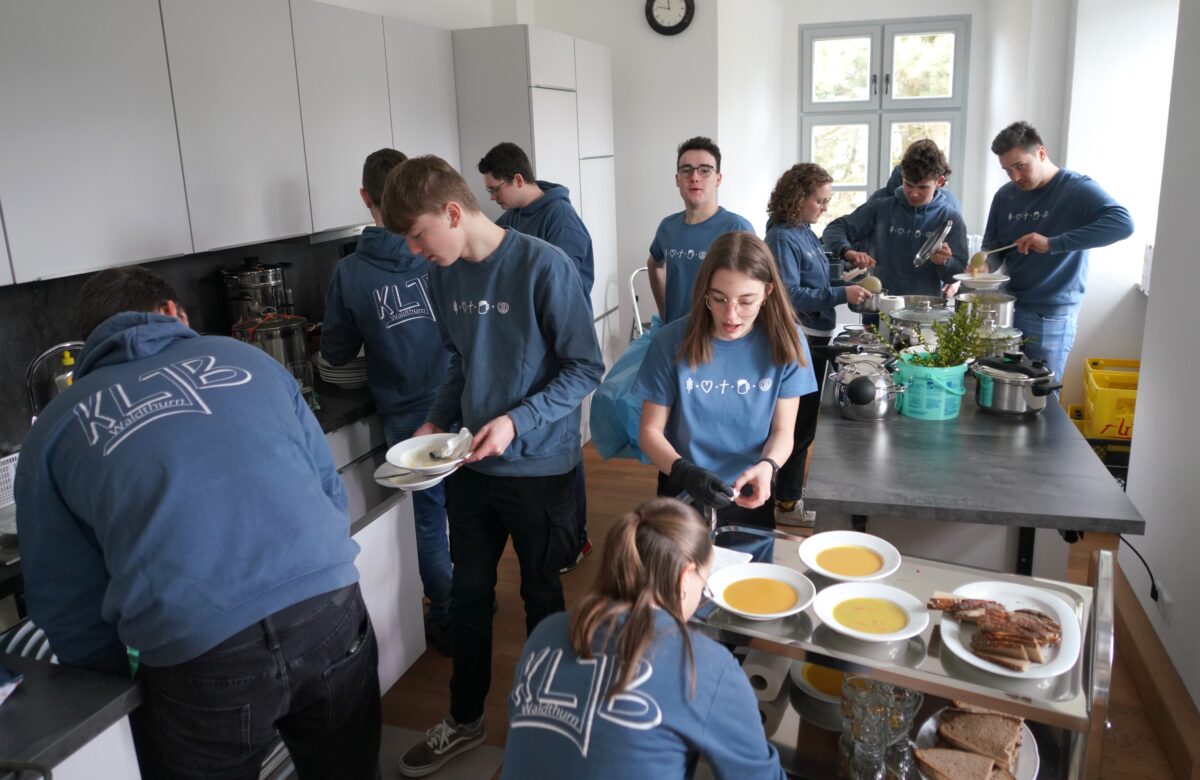 Viele Töpfe befüllt mit Erdäpflsuppe haben die jungen Christen in das altehrwürdige Lobkowitzschloss, das als Pfarrheim genutzt wird, zum diesjährigen Fastenessen geschleppt und per Aufzug in den ersten Stock verfrachtet.