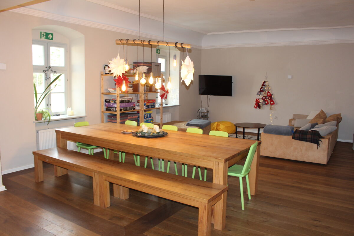 In den Gängen leuchten Nikolaus- und Rentierfiguren. Die Gemeinschafts-Wohnküche ist mit Sternen geschmückt. Auf dem großen Esstisch steht der selbst gebundene Adventskranz. Es weihnachtet im Meierhof. Seit Frühjahr 2020 ist hier die stationäre Jugendhilfeeinrichtung des Learning Campus daheim. Sie bietet Platz für zehn Bewohner im Alter zwischen neun und 18 Jahren. Sie ist voll belegt. Das kommt nicht von ganz ungefähr. Die Einrichtung hat einen sehr guten Ruf. Die Warteliste ist lang.