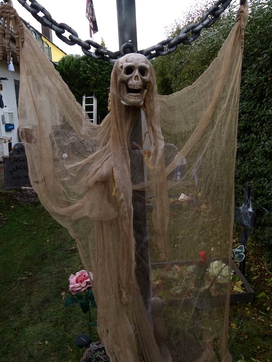 Fleischer hat ein Faible für das Schaurig-Morbide. Als sein Sohn Philipp noch mit großer Begeisterung an Halloween von Haustür zu Haustür zog und Süßes oder Saueres verlangte, war der Papa immer dabei. Der Junge kam 2017 ;bei einem Verkehrsunfall ums Leben. “Ich führe diese Halloween-Tradition fort, anders eben – in meinem eigenen Garten”, erzählt er. Und sein Sohn, davon ist er fest überzeugt, werde von oben herabschauen und sich mitfreuen.