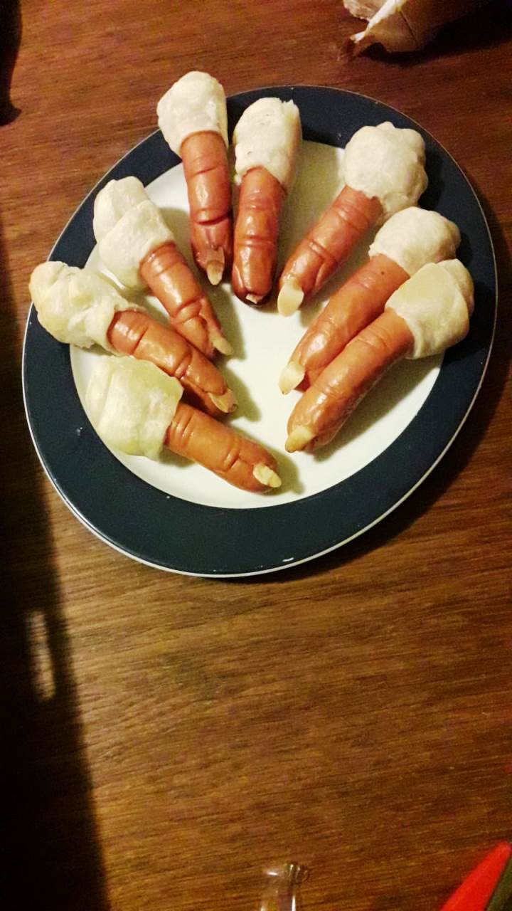 Die Besucher, die am Abend des 31. Oktober zum Gruselabend bei den Fleischers vorbeischauen, werden lautstark empfangen. Eine CD wird aufgelegt. Statt kleiner Nachtmusik gibts aber Horrorsound vom Feinsten, wie knarrende Türen oder Schreie des Entsetzens. Und gefeiert wird bei Fleischer auch, im kleinen Kreis versteht sich. 30 Nachbarn, Freunde und Bekannte werden in der Halloween-Nacht vorbeischauen und sich “Finger”-Food und vielleicht einen “Blut”-Wurz schmecken lassen.