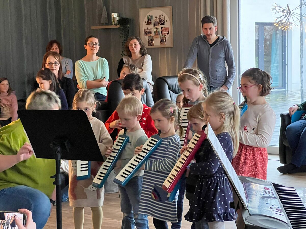 Im Anschluss daran zeigte die Melodica-Gruppe, die erst seit Mitte September zusammen übt, bereits erstaunliche Fortschritte. Zwei fortgeschrittene Spielerinnen beeindruckten mit einer zweistimmigen Version von „Morgen kommt der Weihnachtsmann“. Klassiker wie „Jingle Bells“ und „In der Weihnachtsbäckerei“ durften bei diesem Vorspiel nicht fehlen.