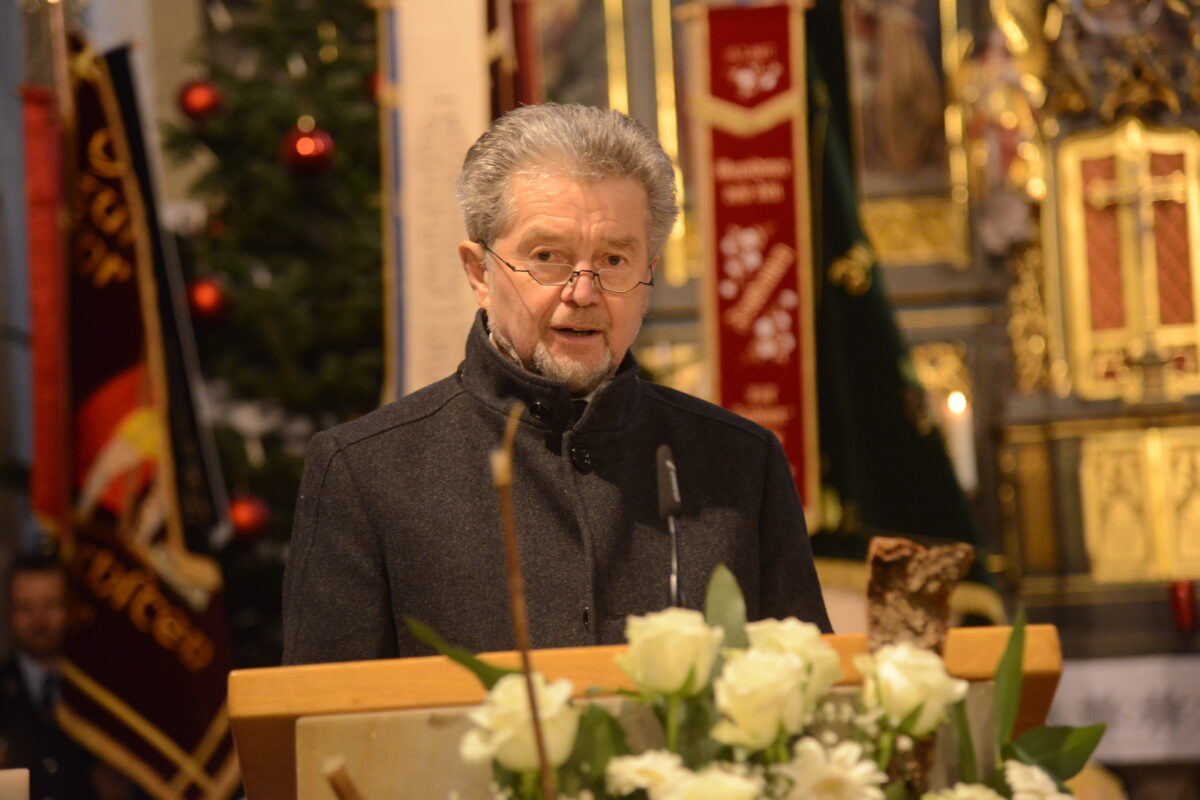 Altbürgermeister Johann Walbrunn sprach den Nachruf für die Kirchenverwaltung und Pfarrgemeinderäte in der Großgemeinde. Er erinnerte an die Erzählungen Pater Schmitts über seine Kindheit und seinen früheren Beruf. Walbrunn hob hervor, dass Pater Schmitt als Geistlicher in der Pfarreiengemeinschaft und auch später noch im Ruhestand Gottesdienste, zuletzt noch am 23. Dezember 2025, gehalten habe. „Pater Schmitt war nicht nur ein geistlicher Begleiter, sondern ein Mensch mit offenem Herzen, Humor, mit Wärme und großer Menschlichkeit.“ Bei allen kirchlichen Festen, bei den Aufnahmen der Wallfahrer und vielen anderen kirchlichen Anlässen sei das Herz Pater Schmitts spürbar geworden. „Er hatte immer ein offenes Herz für alle Gläubigen“, sagte Johann Walbrunn. Die Kolpingfamilie Pleystein nehme Abschied von ihrem Präses, der diese Aufgabe seit Beginn seines Wirkens im Jahr 2008 in Pleystein innehatte. Viele weitere Vereine, wie die Thanhauser Fußwallfahrt, die Stadtkapelle Pleystein, die Feuerwehr, der Männergesangverein und die katholischen Vereine, bringen Pater Reinhold Schmitt ihre Dankbarkeit und Hochachtung auf Dauer entgegen, zeigte sich der Altbürgermeister überzeugt.