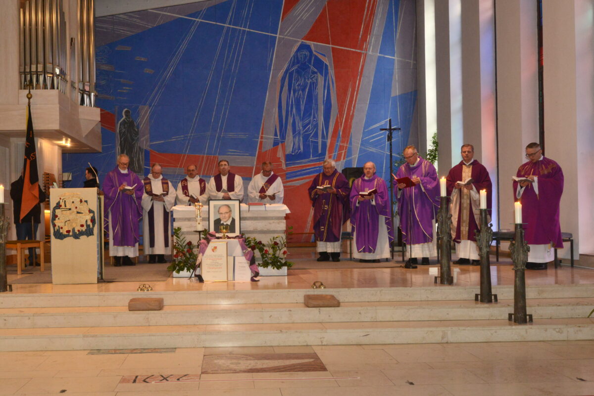 Domkapitular em. Thomas Kessler, Diözese Würzburg, sprach nochmals das kirchliche Wirken Pater Reinhold Schmitts an, der sich für den Aufbau lebendiger Gemeinden im Bistum Würzburg eingesetzt habe. Dann beschrieb der Domkapitular die unterschiedlichen Abschnitte des Wirkens von Pater Schmitt und ging im Besonderen auf das Jahr 1987 ein, in dem der jetzt Verstorbene zum Pfarrer von St. Kilian in Haßfurt ernannt wurde. „Er wirkte aber über die Haßfurter Kirchtürme hinaus.“ Bis 2008 sei Pater Schmitt in der Pfarrei Haßfurt tätig gewesen. Im Namen von Bischof Dr. Franz Jung dankte der Geistliche dem verstorbenen Geistlichen für seine Tätigkeit in knapp vierzig Jahren.