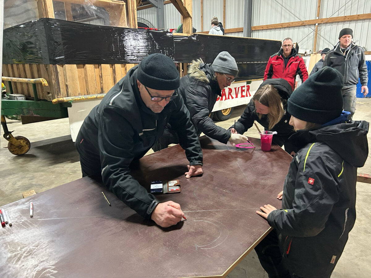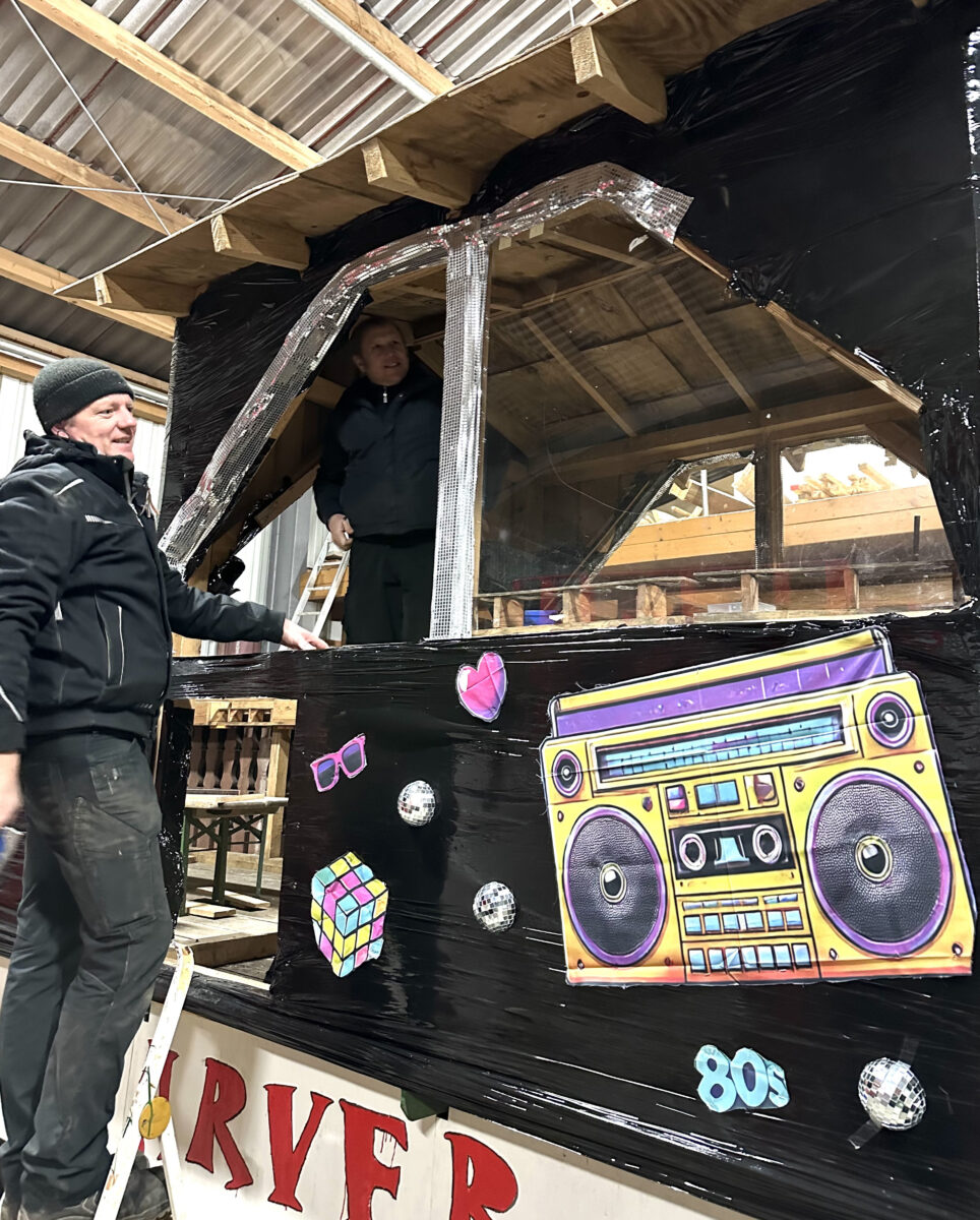 Die eiskalten Temperaturen störte die Mannschaft nicht, um letzten Freitag die grundlegenden Dekorationen vorzunehmen. Ein gemütliches Beisammensein zum Aufwärmen belohnte dann die Truppe. Kurz vor dem Umzug steht die Restdekoration sowie die Installation der Musikanlage, des Mischpults und das Stromaggregat auf dem Programm. Rund 25 Helfer, darunter auch die Jüngsten Baujahr 2016, sind beim Aufbau beteiligt.