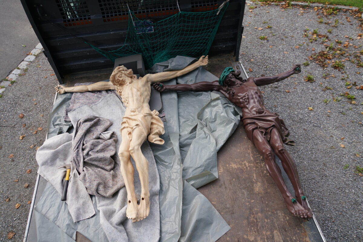 Mit großer Vorsicht wurde sie am Kreuz des Freialtars befestigt. Der bisherige Herrgott wurde oberhalb des Sakristeiraums der Wallfahrtskirche als Zeitzeugnis gesichert. Einer, der die Installation mit besonderem Interesse verfolgte, war der 85-jährige Fahrenbergmesner i.R. Josef Riedl.