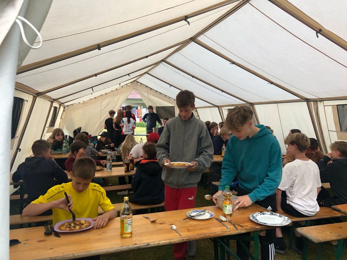 Das Thema „Märchen“ zog sich wie ein roter Faden durch die gesamte Woche und inspirierte zu Kennenlernspielen, Geschichten, einem Stationenlauf, Thementagen sowie Rollenspielen und einem Zelt-Film-Abend. Die kreativen und ausdauernden Aktivitäten forderten die Fantasie und die Motivation aller Beteiligten heraus. Unter der Leitung des Küchenchefs Benedikt Völkl wurden die Teilnehmenden mit ausgewogenen Mahlzeiten verpflegt, die gerade bei dem unbeständigen Wetter für warme Stimmung sorgten. Weder der Regen noch die nächtlichen Wimpeldiebe konnten die gute Laune der Gruppe trüben.