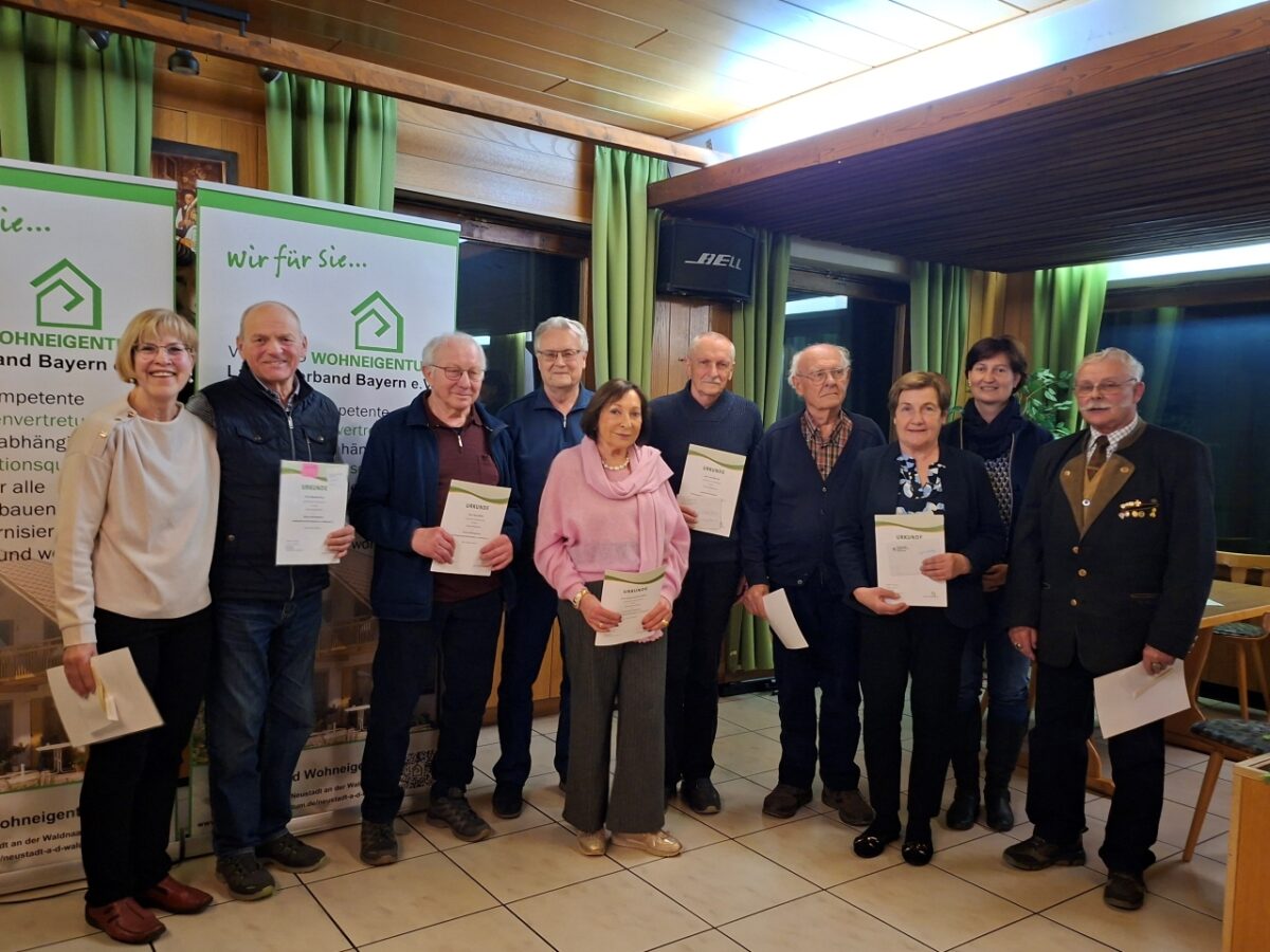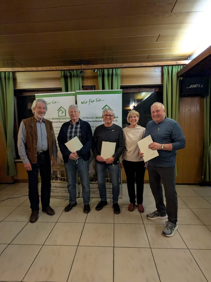 Mit einer besonderen Auszeichnung überraschte stellvertretender Bezirksvorsitzender Arthur Weber drei Mitglieder der Vorstandschaft. Die beiden Beisitzer Josef König und Anton Meister sowie der zweite Schriftführer Hans Prem erhielten von ihm für ihr Jahrzehnte langes Engagement das Ehrenzeichen in Silber des Verbandes Wohneigentum, Bezirksverband Oberpfalz.