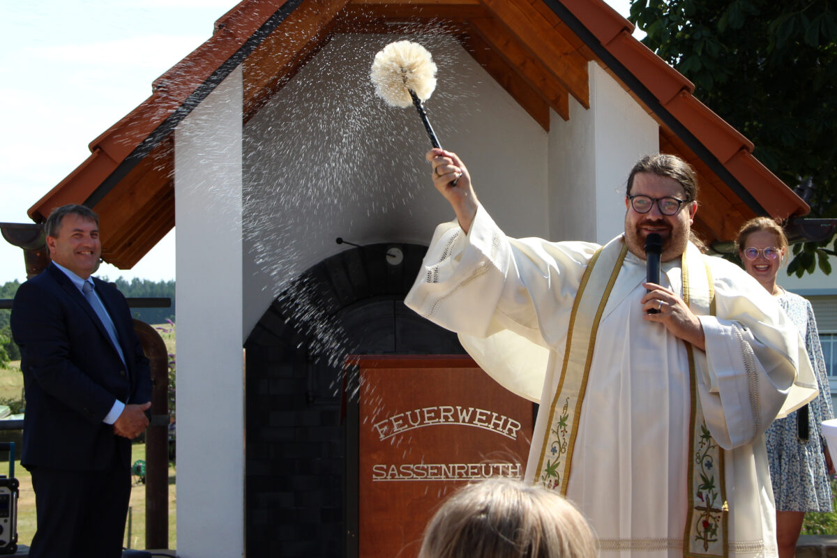 Den feierlichen Segen spendete dabei Pater Johannes Bosco Ernstberger, der die Anlagen unter den Schutz Gottes stellte. In seiner Ansprache hob er hervor, wie wichtig solche Treffpunkte für das Zusammenleben seien und dass sie das Dorf mit Leben füllen.