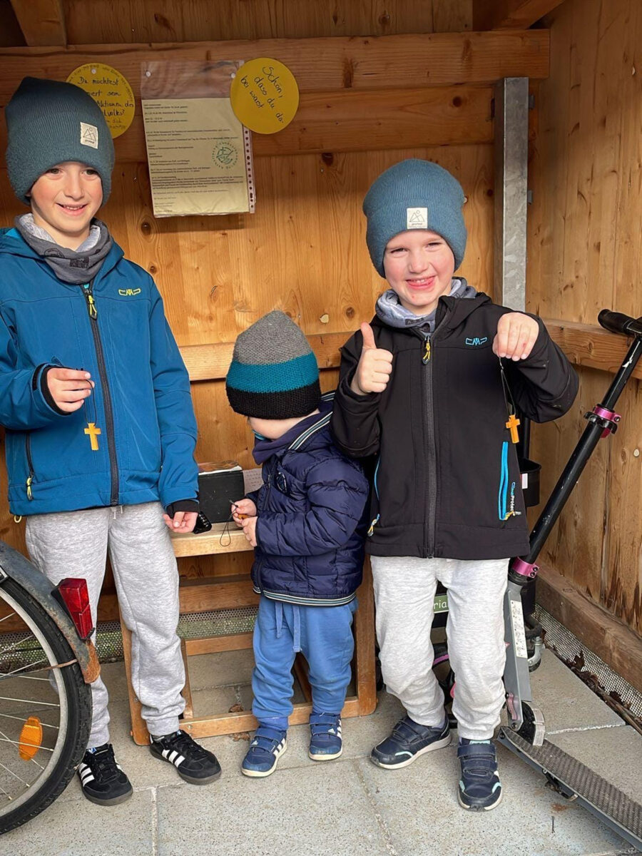Am Ziel öffnete sich die Schatztruhe und es kam ein kleines wunderschönes Holzkreuz zum Vorschein, dass sich die Gewinner stolz umhängten.