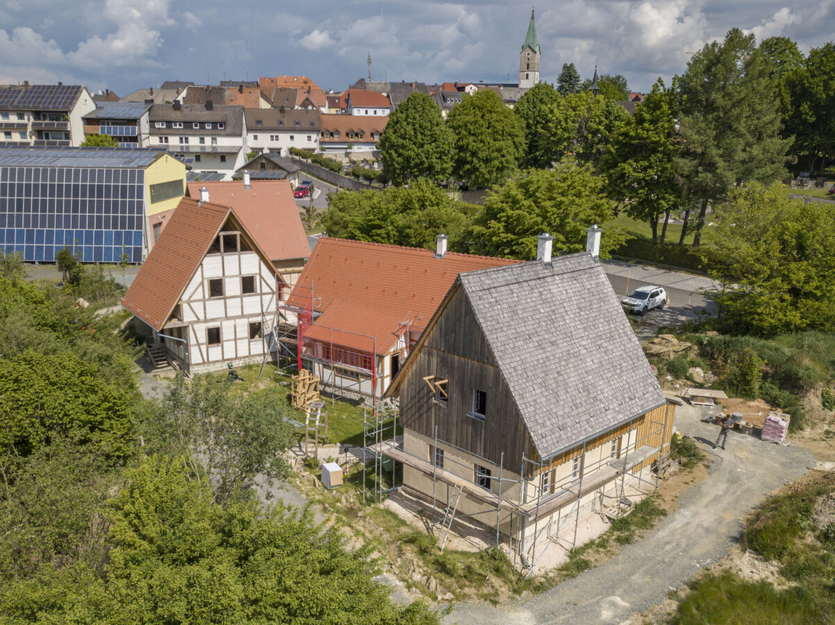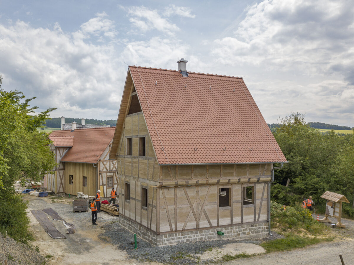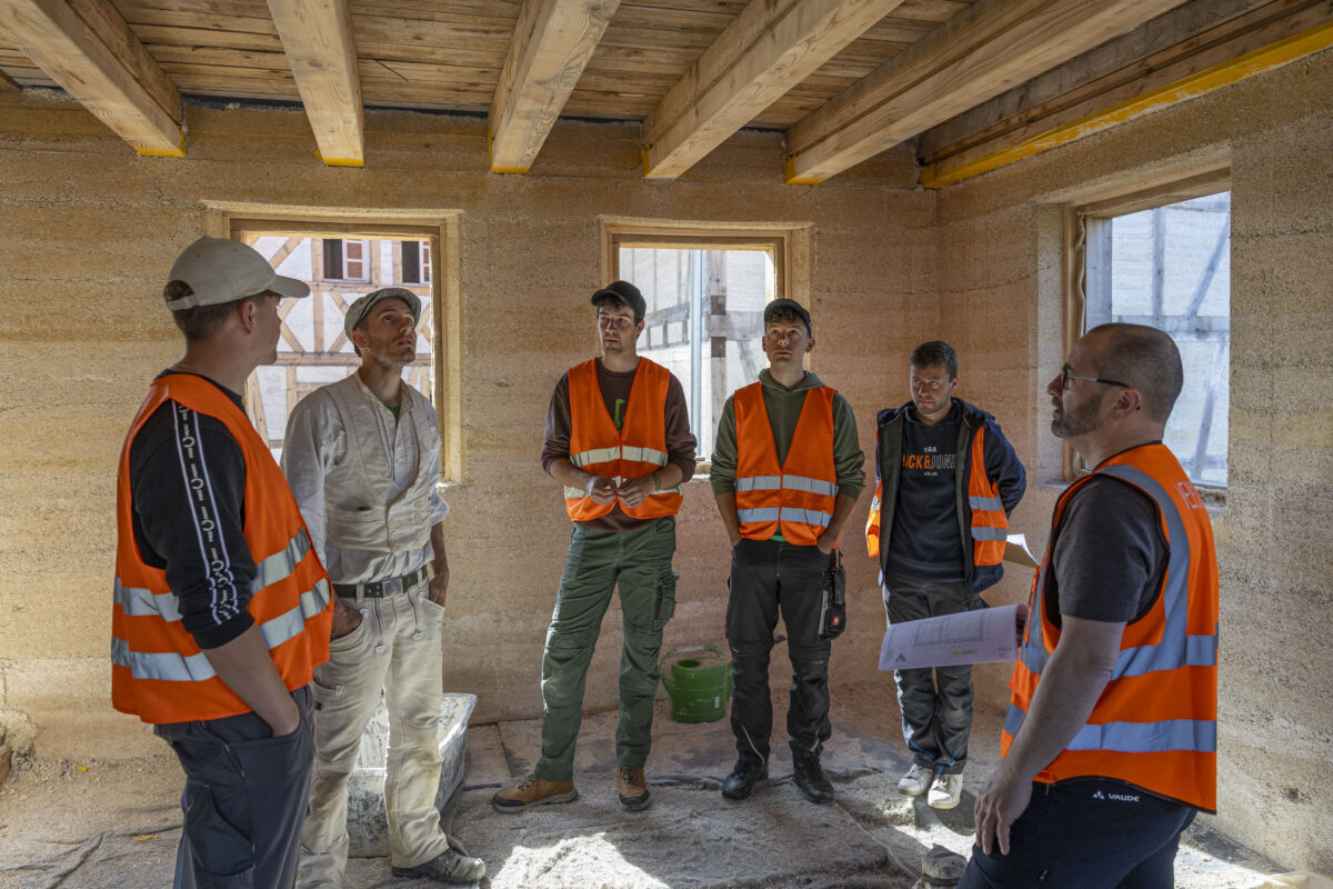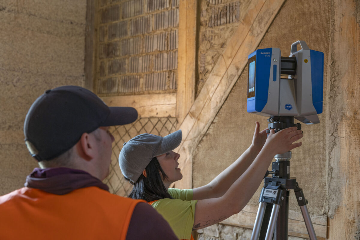 Unter Bauleitung von Steinmetzmeister Andreas Mann werden im “Naturdorf” in traditioneller Handwerkstechnik vier nachhaltige Ferienhäuser errichtet. Verwendet werden nur natürliche Baumaterialien, etwa Hanfkalk als Dämmmaterial und Lehm als Putz. Was bisher zu sehen ist, ist vielversprechend. Mit den Laserscans wird der aktuelle Baufortschritt dokumentiert. Das soll in regelmäßigen Abständen wiederholt werden. Am Ende können die Feriengäste auf dem Tablet im Zeitraffer sehen, wie ihr Haus entstanden ist.