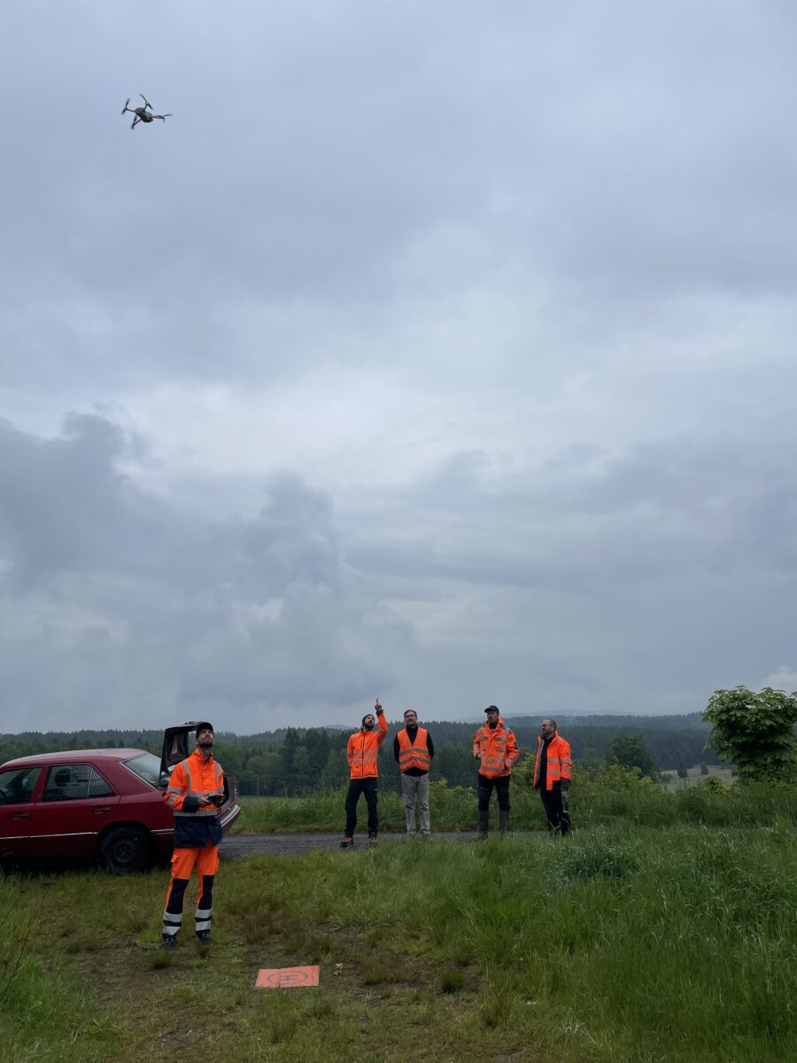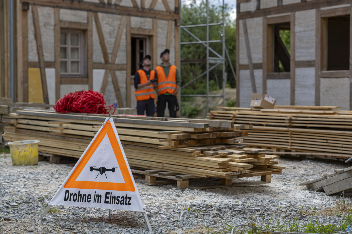 Die Drohnenflüge in Paulusbrunn sind nur ein Part. Die Studenten vermessen zudem ganz klassisch den Geschichtspark. Ihre Ergebnisse werden Basis einer neuen Übersichtskarte. Der derzeitige Faltplan ist nicht mehr aktuell. Es fehlen Gebäude; die Maße stimmen nicht. Dritter Teil des Projekt sind Laserscans des “Naturdorfs”, das derzeit im Bau ist.
