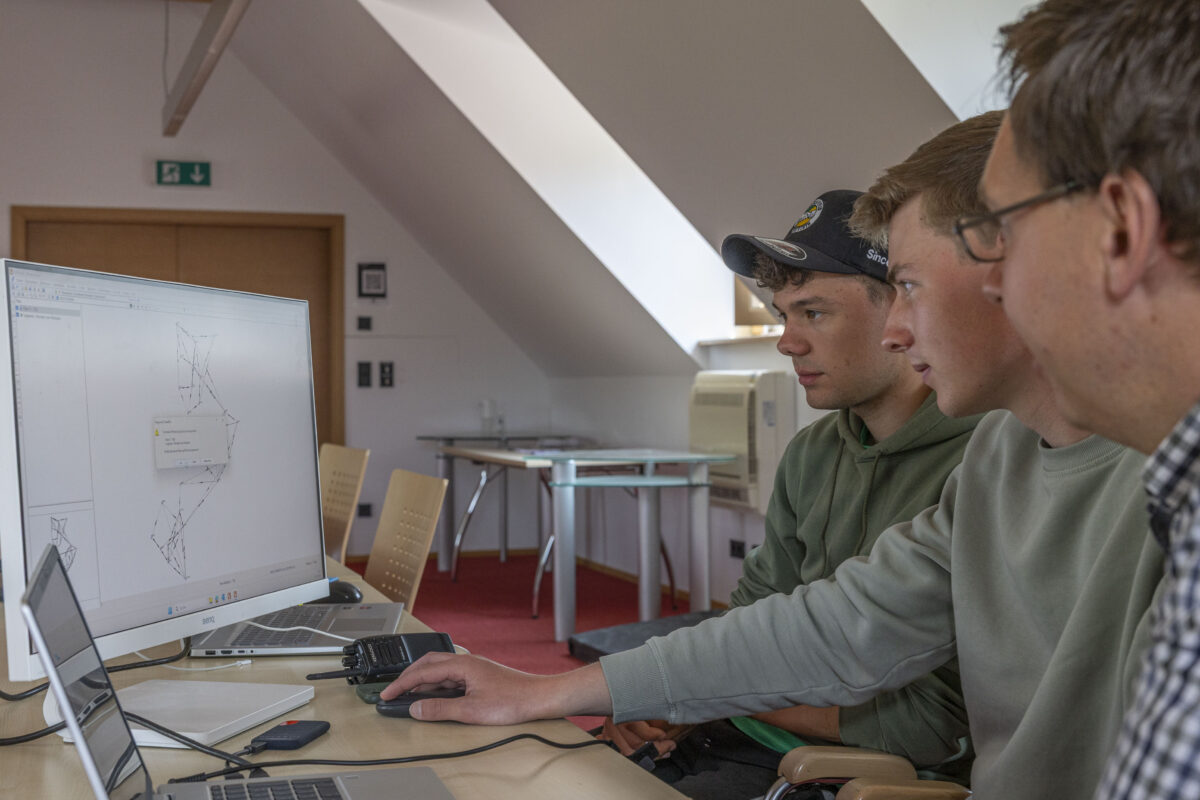 Die Studenten im sechsten Semester stehen kurz vor dem Abschluss ihrer Studiums Geoinformatik und Landmanagement. Sie sollen zeigen, was sie an der OTH Amberg gelernt haben. Der Geschichtspark liefert dafür ideale Bedingungen. Er ist seit 2024 “ILE”, innovativer Lernort. Prof. Ulf Kreuziger schwärmt von den gut ausgestatteten Seminarräumen und der ArcheoWerkstatt. Vor Ort sind auch die Laboringenieure Christan Angerer und Felix Geitner-Ferstel. Prof. Ralf Drescher betreut das Projekt ebenfalls mit.