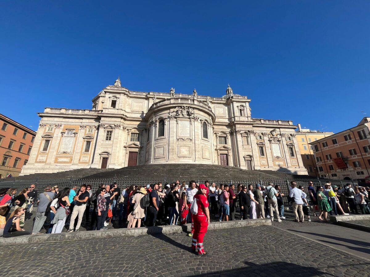 Samstagabend, 10. Mai. Die Morgensterns wollen zum Grab des verstorbenen Papstes St. Franziskus in der Kirche Santa Maria Maggiore. In Rom ist viel los. Der Bus kommt nicht. Die Grafenwöhrer gehen schließlich zu Fuß gut 45 Minutenbis zur Basilika im Stadtzentrum. Dort staut sich selbst am Abend eine “Riesenschlange” um die Kirche herum. Eigentlich soll um 18.30 Uhr Einlassende sein, was angesichts des Ansturms aufgehoben wird.