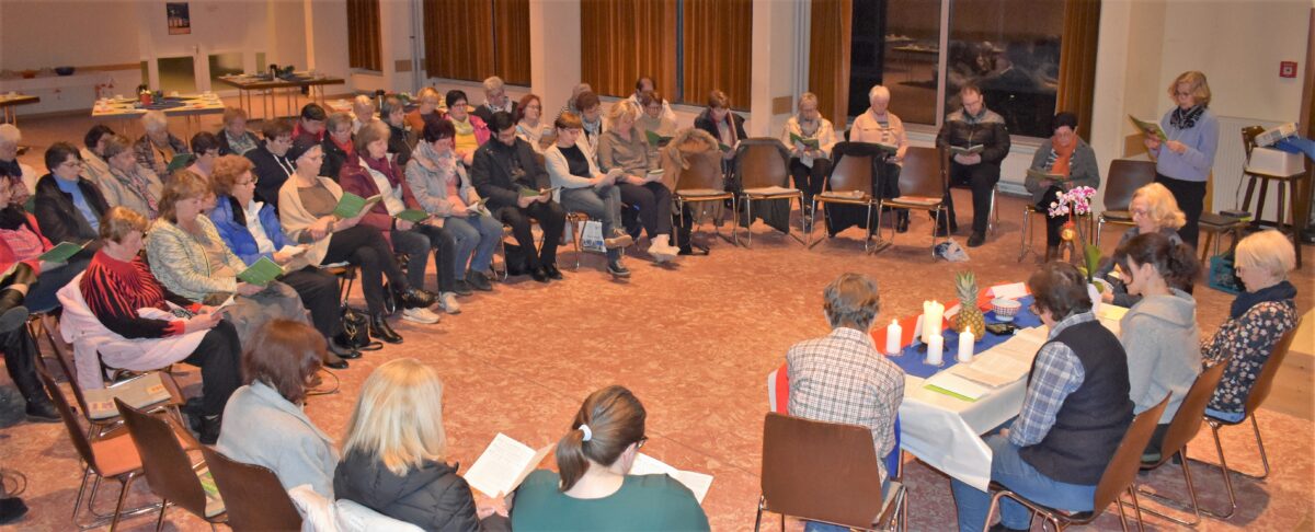 Der Katholische Frauenbund hat mit einigen Frauen aus der evangelischen Gemeinde den Weltgebetstag vorbereitet und zusammen gebetet. Der Chor “Ex Animo” sang unter der Leitung von Johanna Baumann und mit Begleitung von Christian Baumann die speziellen Lieder. Unter anderen sagten diese aus: “Soviel Kummer und soviel Schmerz – fast hätten wir uns zu Fall gebracht. Wenig Rücksicht und wenig Herz. Haben wir uns selbst oft zum Gespött gemacht? Aber: “Nur Liebe gewinnt…!”