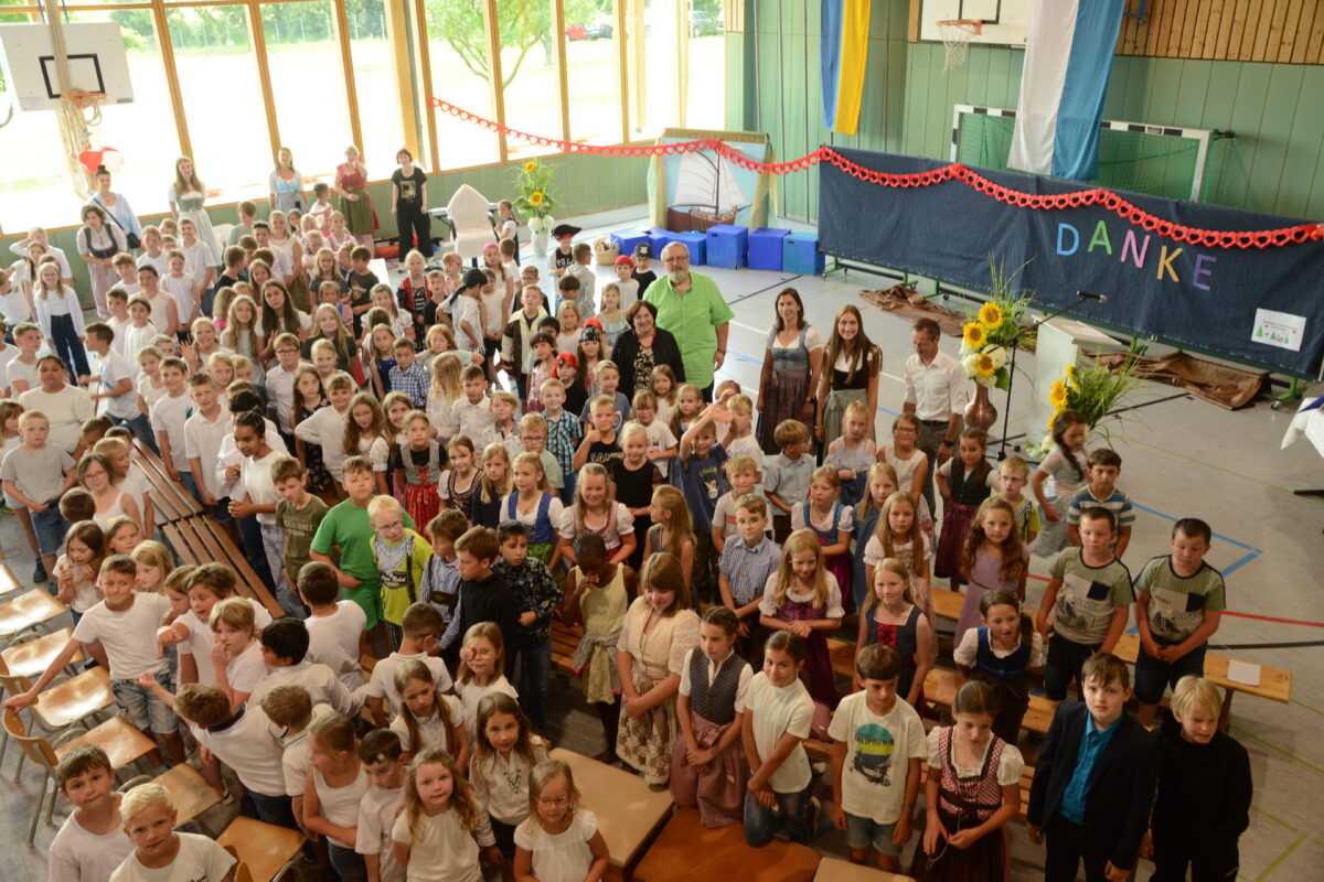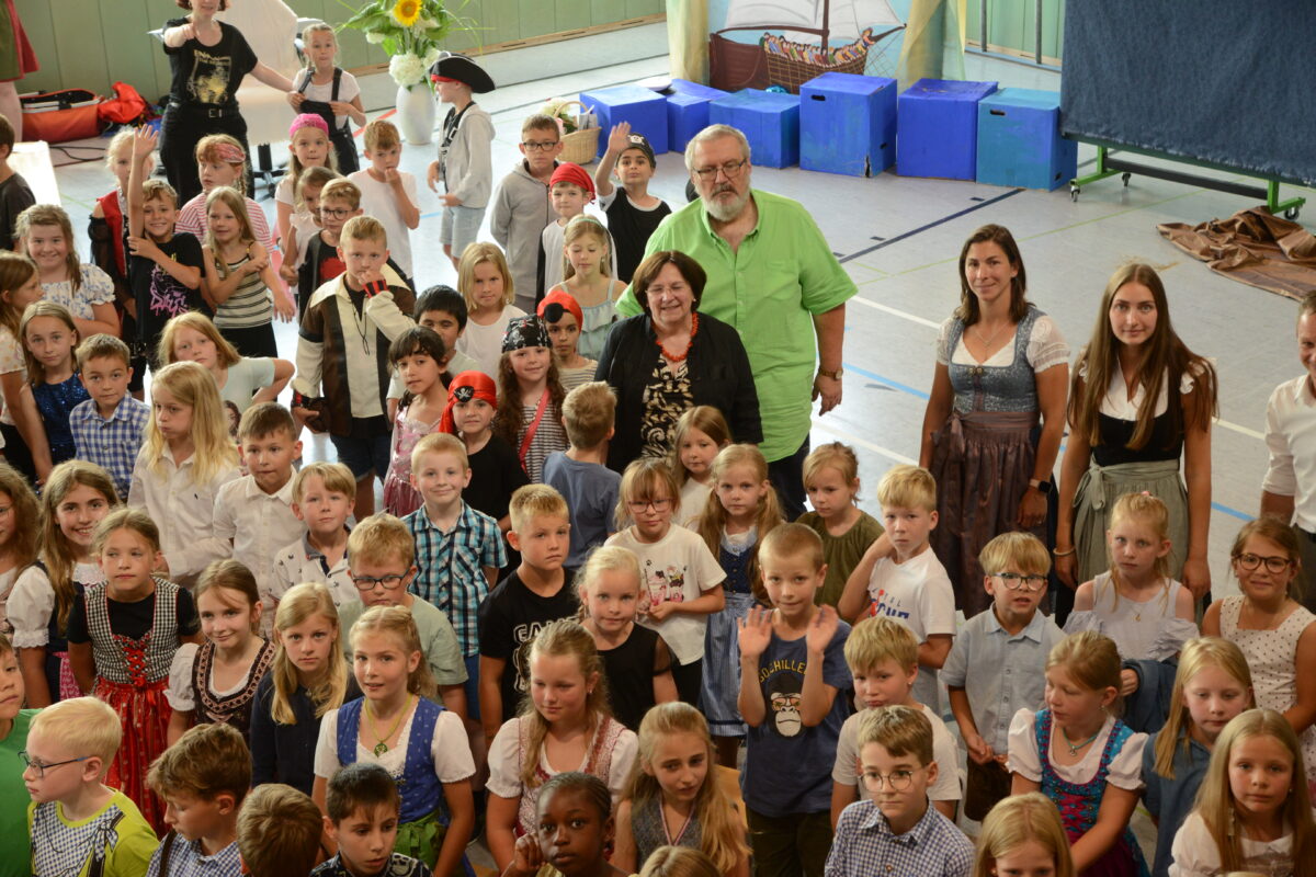 Zwischen den Ansprachen gab es Liedbeiträge der Klassen, wie das „Lied der Piraten“, „Drunt in der grünen Au“ mit umgeschriebenem Text für Christa Walbrunn, „Ich liebe den Frühling“ und viele mehr.