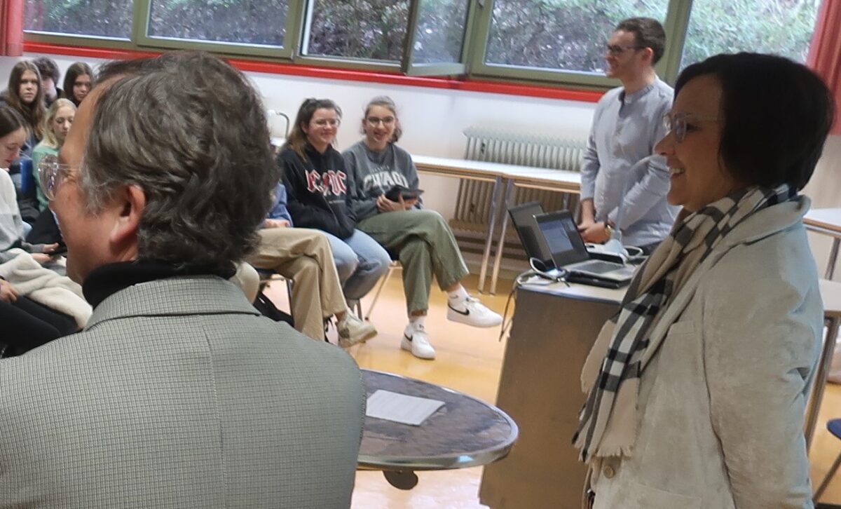 Die Hochschul-Präsidentin, die mit ihrem Gatten regelmäßig einmal im Jahr mit dem Fahrrad die Alpen überquert, wollte mit den Schülerinnen auch über deren Zukunft sprechen. Sie besuchte mehrere Jahrgangsstufen, diskutierte mit den Schülerinnen, beantwortete Fragen und setzte auf Interaktion und Information. Oberstudiendirektor Pröm freute sich über die Besucherin aus München, die authentisch darüber berichten konnte, wie sich Frauen in der heutigen Gesellschaft aufstellten. Nicht nur im wirtschaftlichen und wissenschaftlichen Umfeld, sondern auch daheim in Familie und Privatleben.